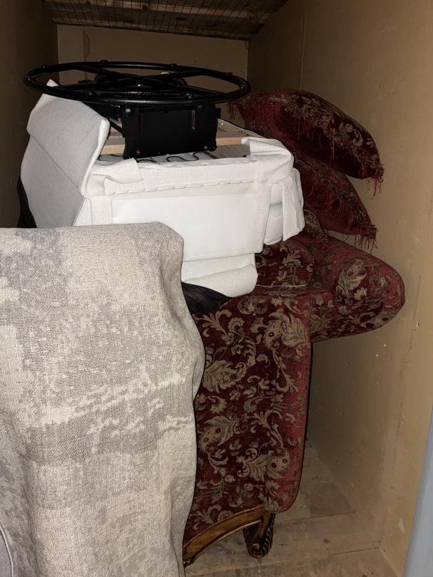 This unit appears to contain…couch / chair / rug / Tote w/misc. items