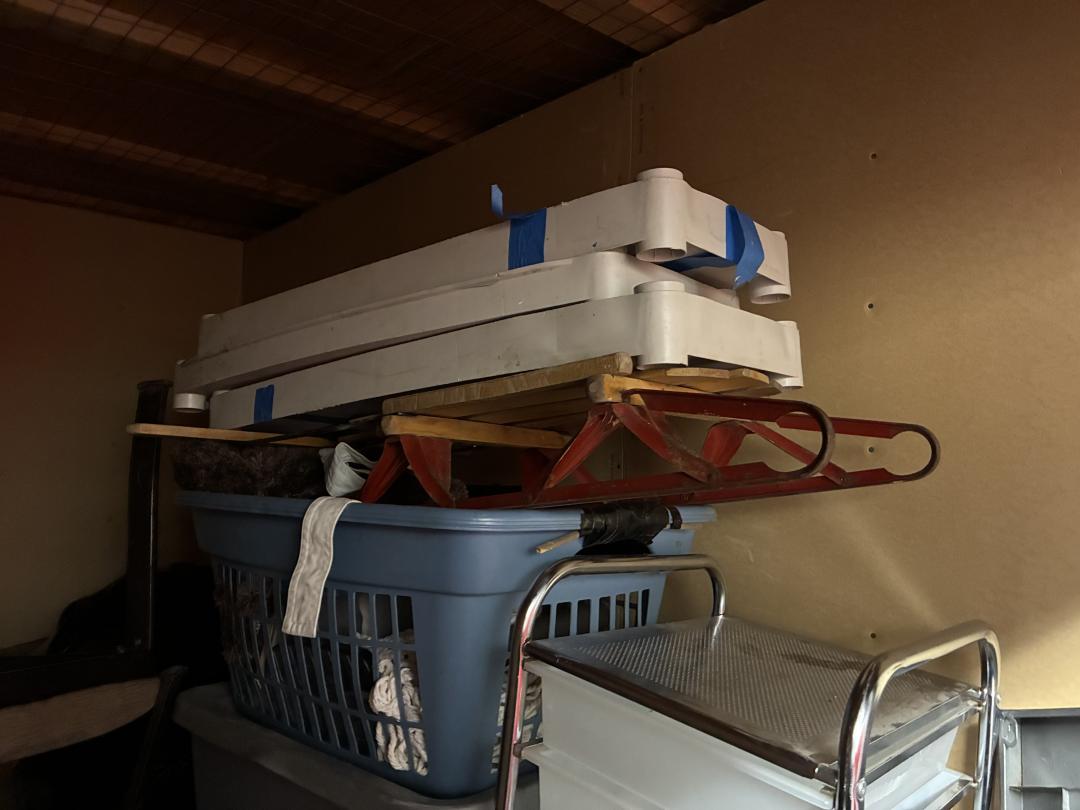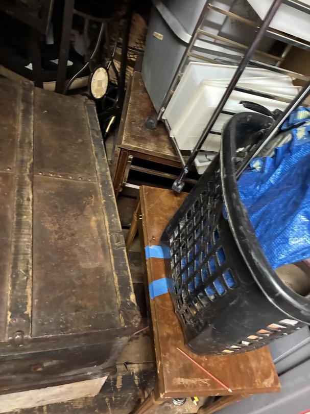 This unit appears to contain…Sled / Chest / Table & Chairs End Table / high Chair Bags & Totes of Misc. Items