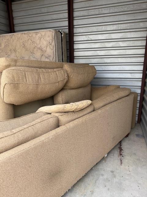 This unit appears to contain…This unit appears to contain: couch, love seat, mattress, boxspring, and deep freeze.