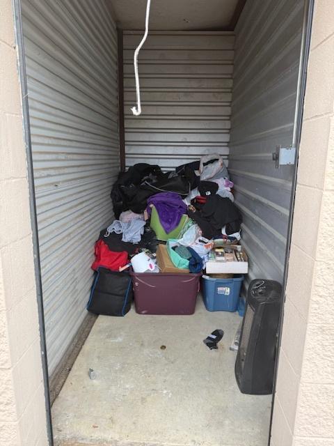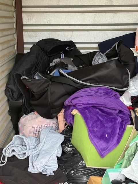 This unit appears to contain…This unit appears to contain: space heater, clothes, totes, bags, blanket, baseball cards, and other misc items.