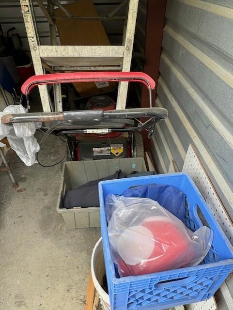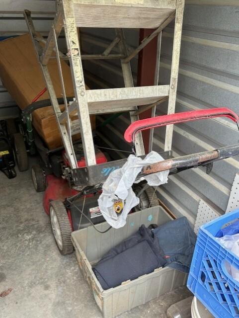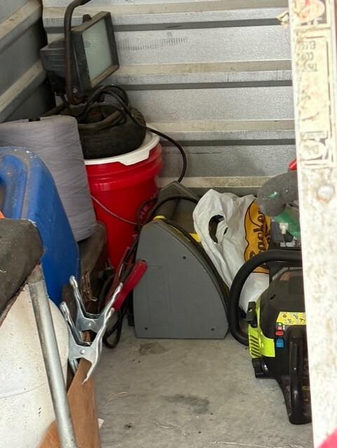 This unit appears to contain…Landscape Equip., Misc. Boxes, Misc. Items, Clothing, Power Tools, Tools