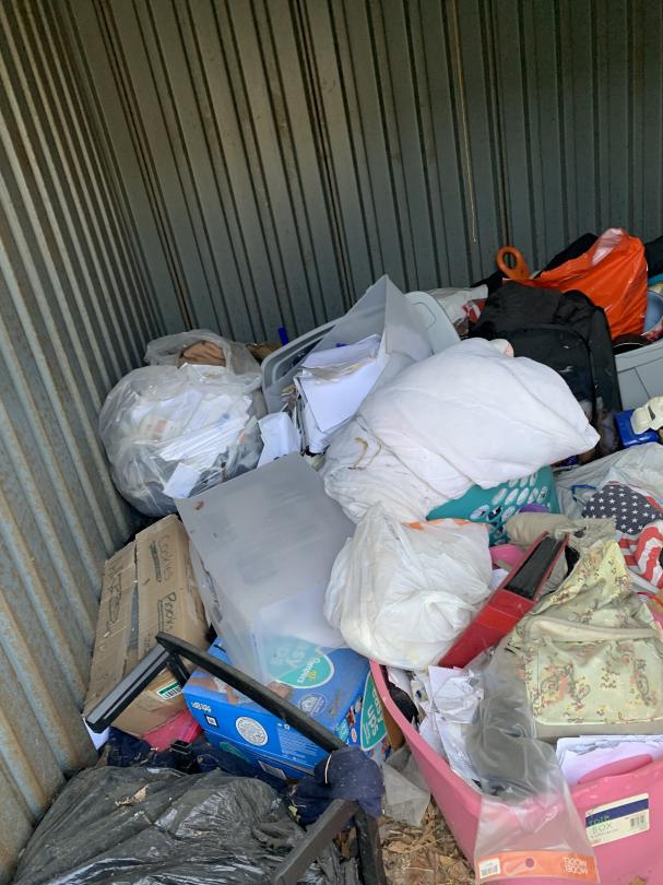 This unit appears to contain…BOXES, CLOTHES, TOTES, DVD'S