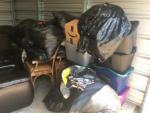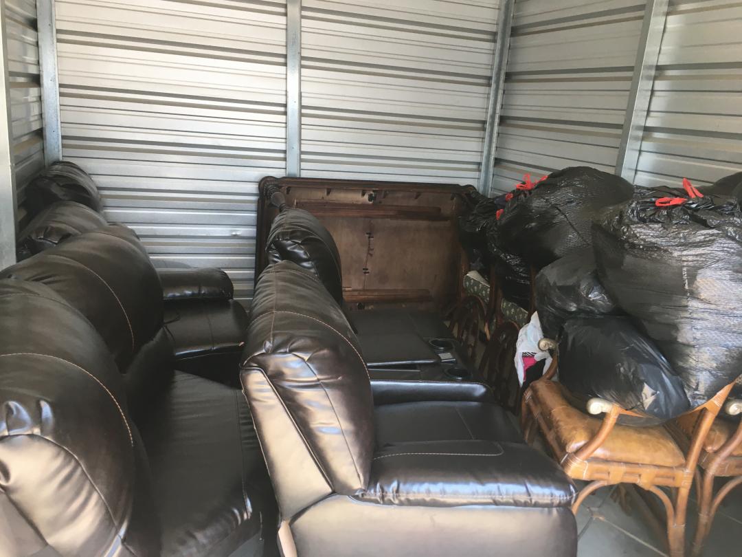 This unit appears to contain…dining table and chairs, sectional, totes, bags, nightstand.