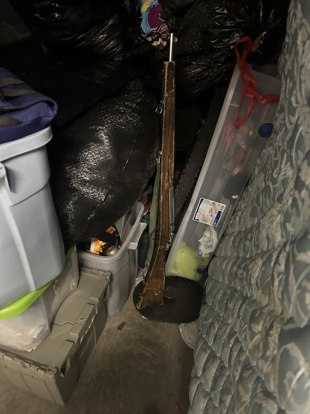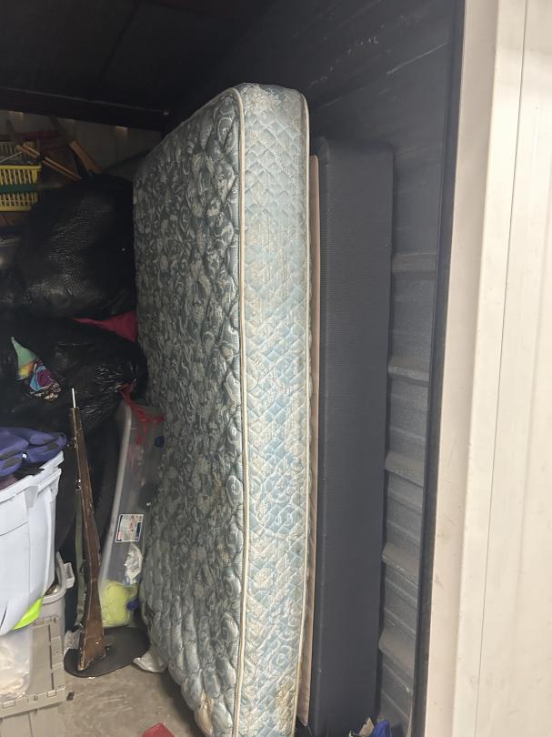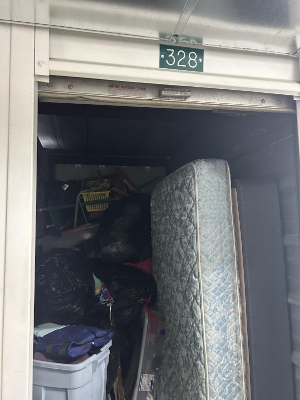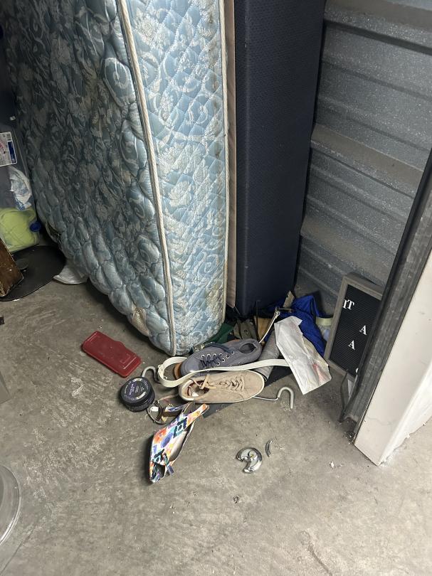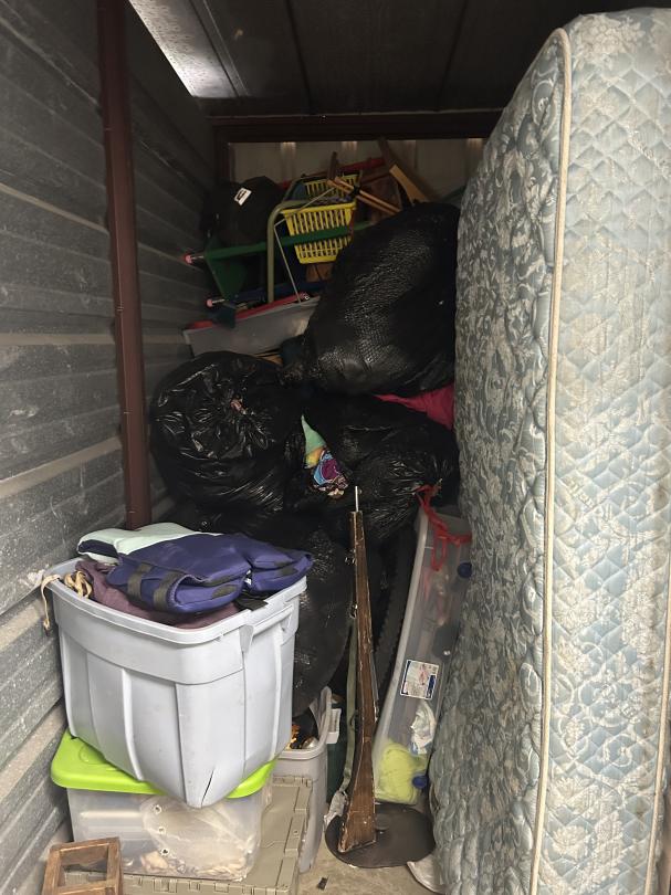 This unit appears to contain…Totes, Mattress, Boxes, toys, Shoes