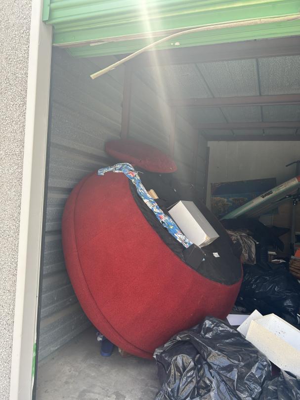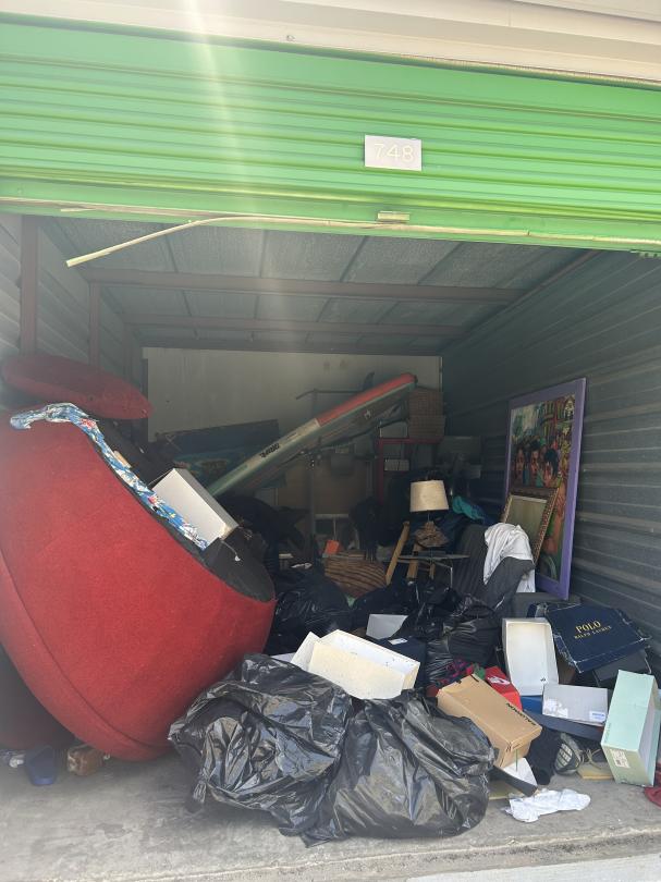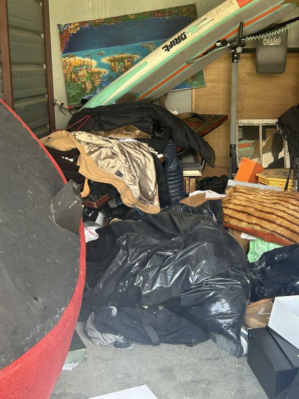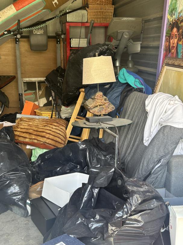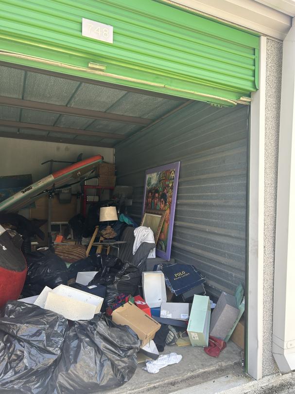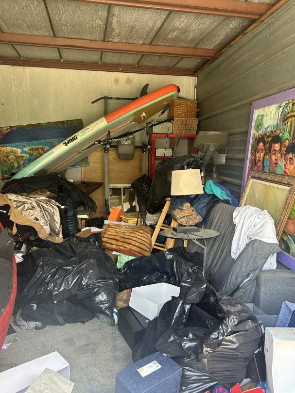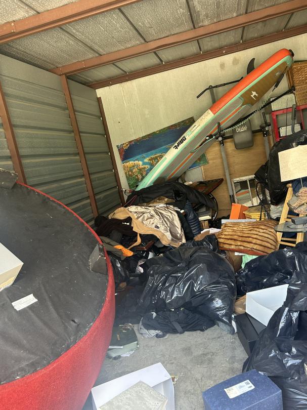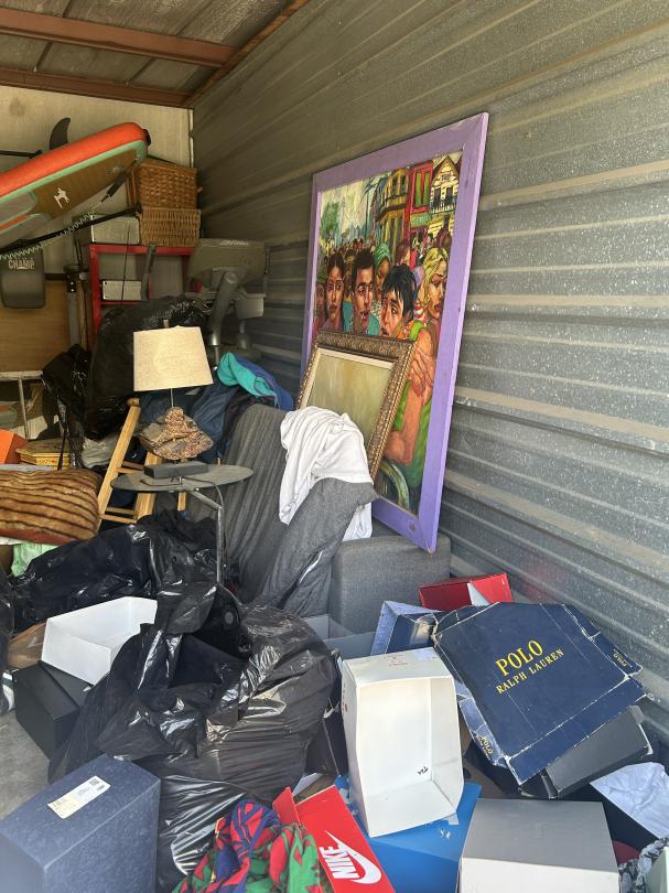 This unit appears to contain…Couch, Artwork, bags, paddleboard, exercise equipment, shelving, clothes, baskets