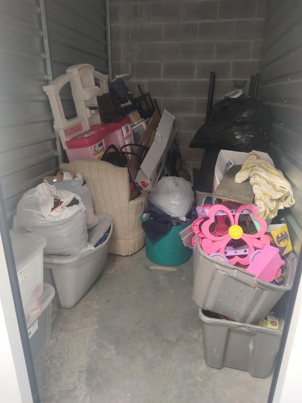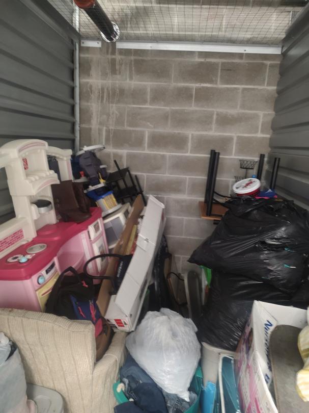This unit appears to contain…totes x-mas tree kid toys kids kitchen set mirror chairs pillows purses tables Shelf picture frame skate board organizers bags boxes bug sprayer book bags shoes love seat children's back pack