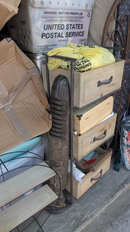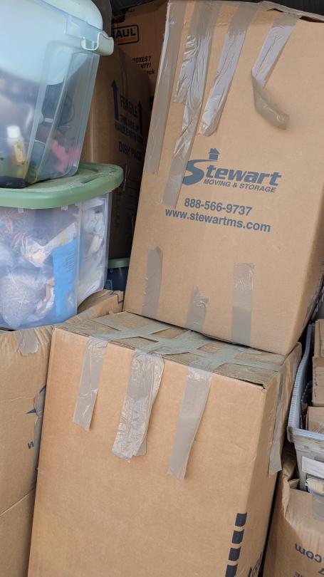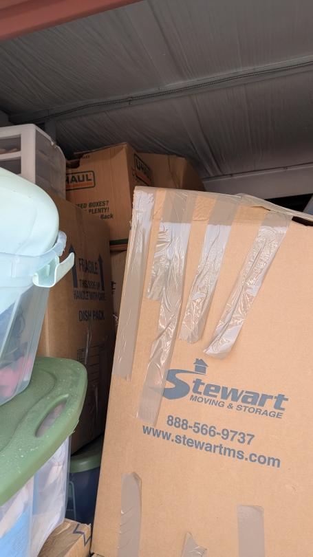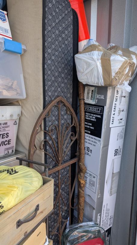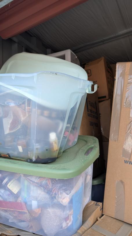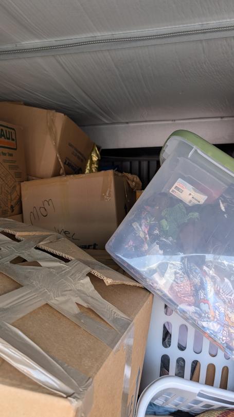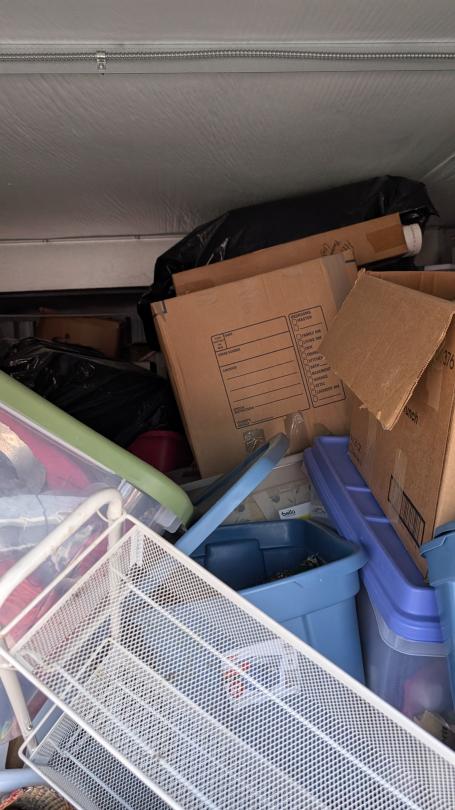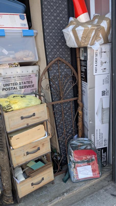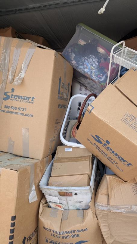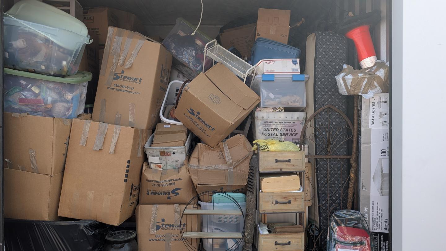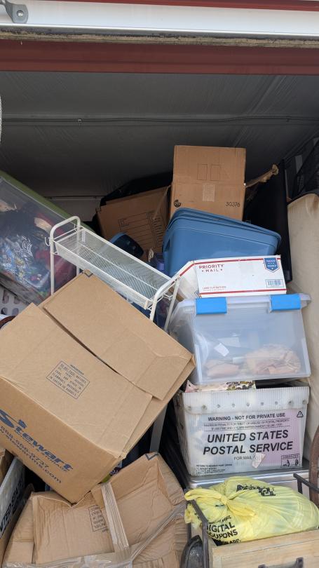 This unit appears to contain…BOXES, TOTES, MATTRESS, LAUNDRY BASKET, ETC