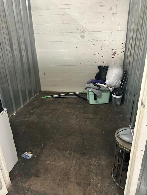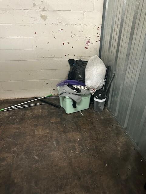This unit appears to contain…shelving, lamps, tables, bags, plastic crates, boxes, clothing