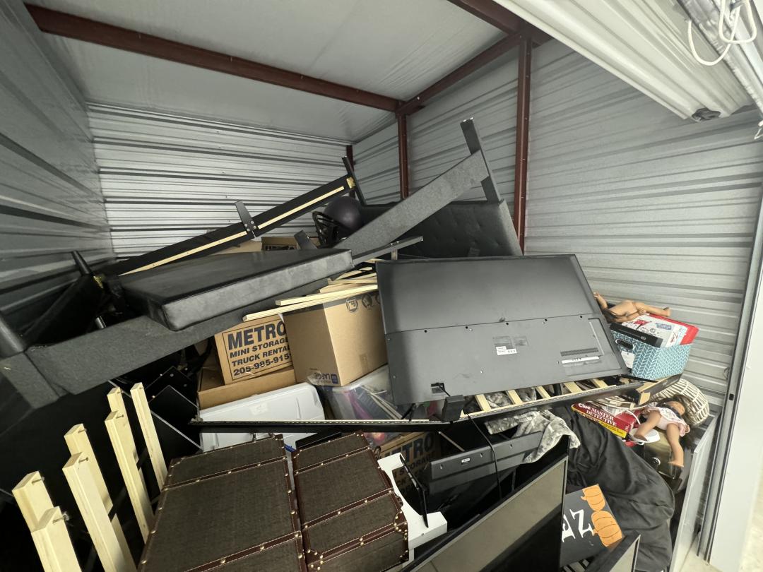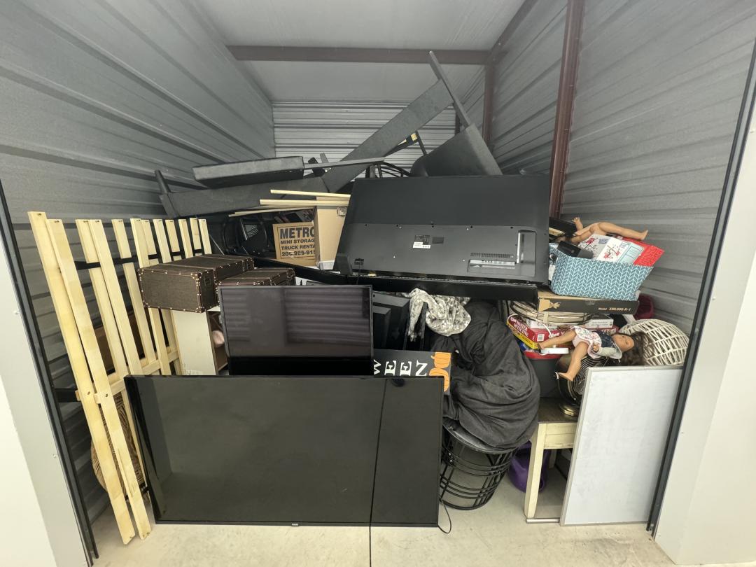 This unit appears to contain…tv, washing machine, totes, boxes, furniture.