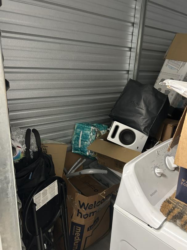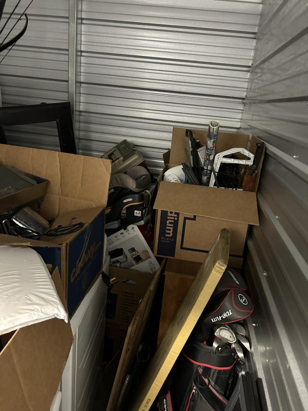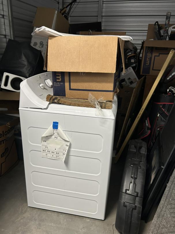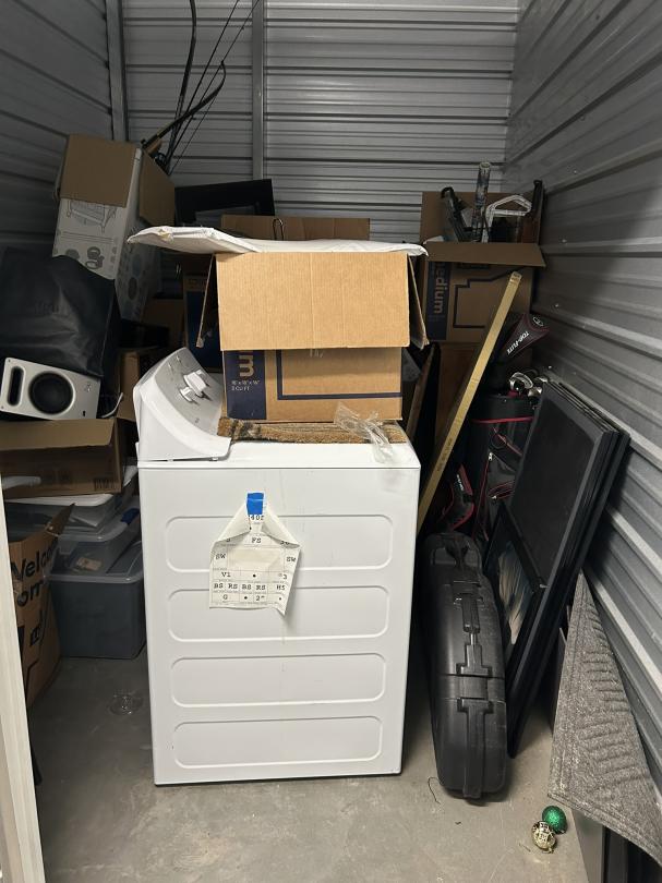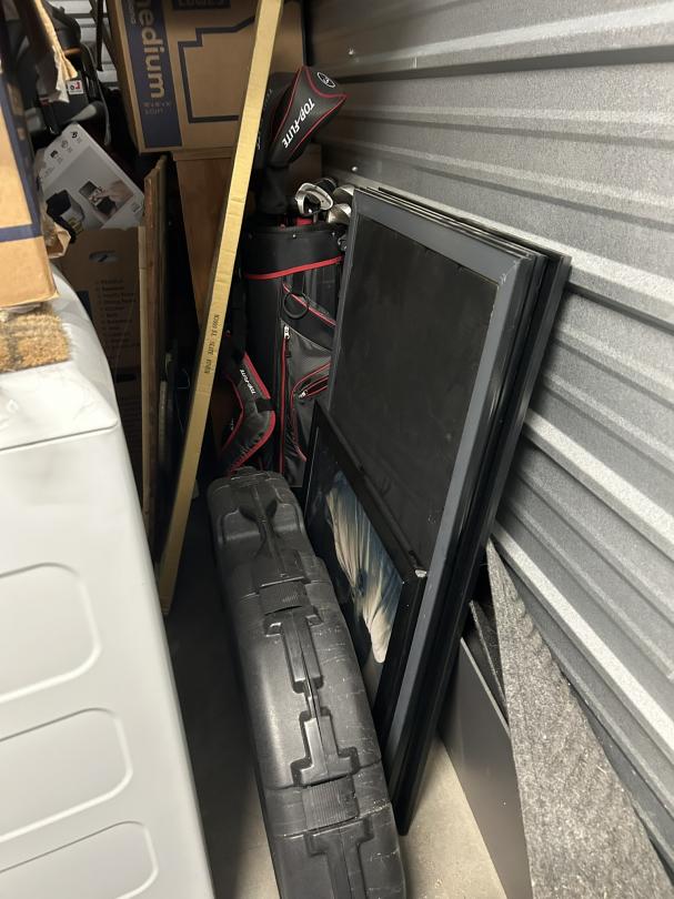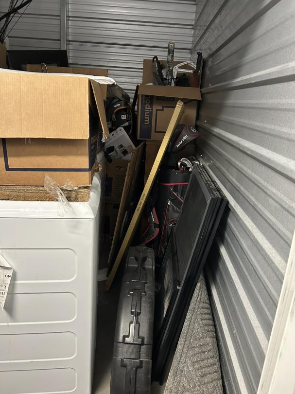 This unit appears to contain…Bag, Box, Washer, Dryer, Fishing Pole, Bow, Golf Clubs, Speaker, Stool, Stroller, Wall Art