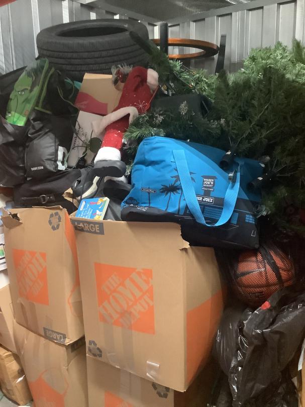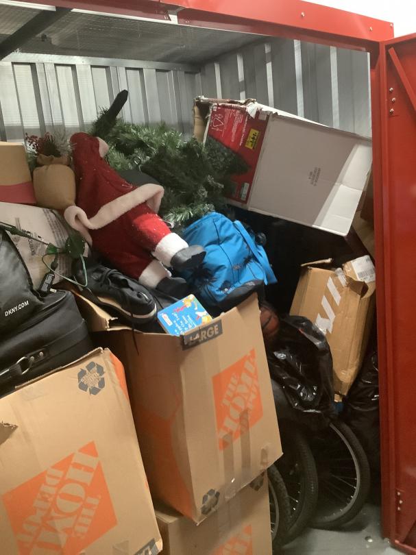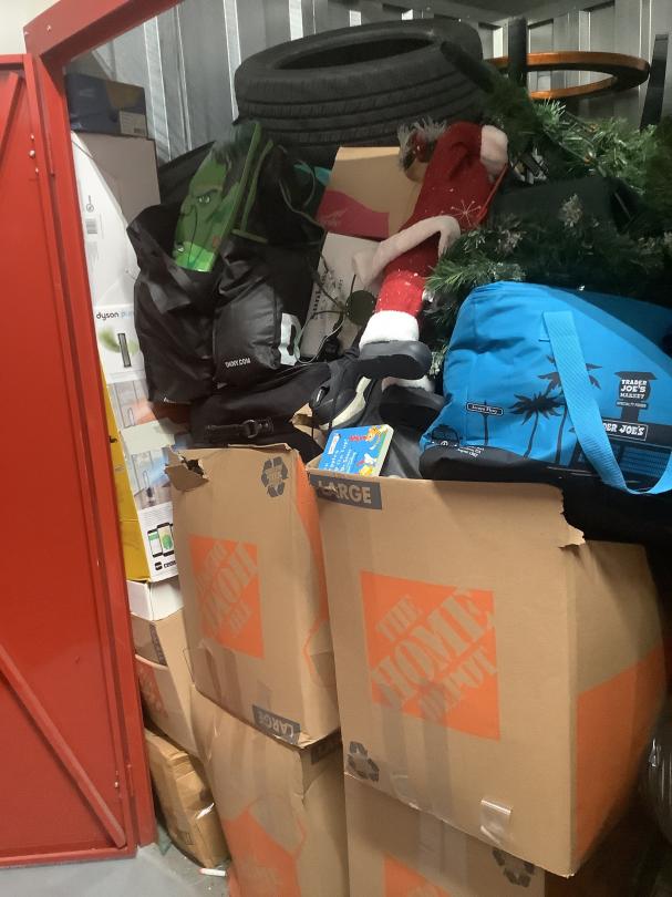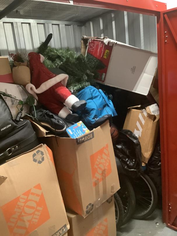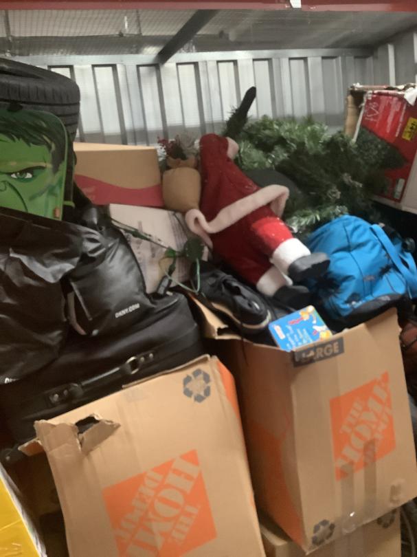 This unit appears to contain…unit appears to contain boxes, Christmas decorations, bicycles, luggage seal 4175431