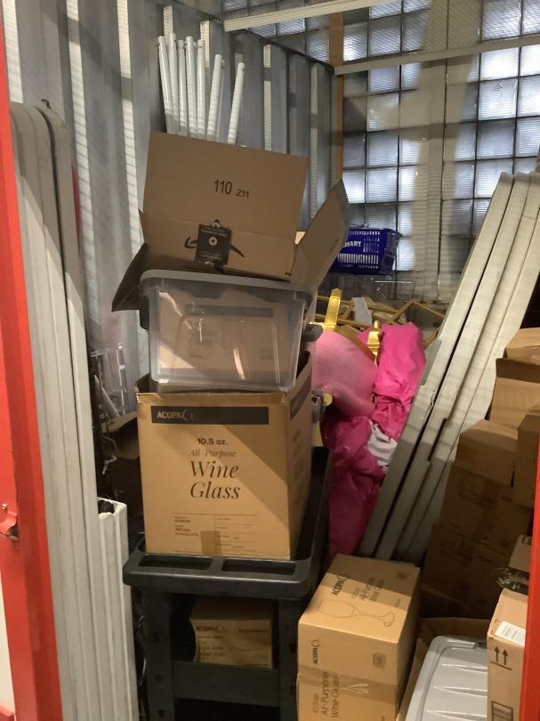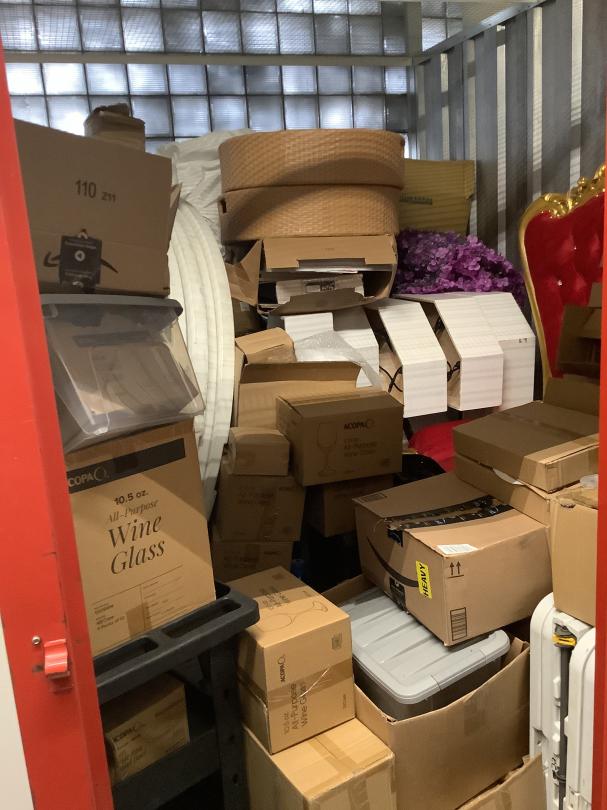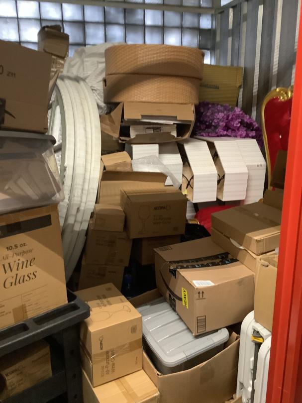 This unit appears to contain…unit appears to contain boxes, folding table, chair, containers, baskets seal 4175456