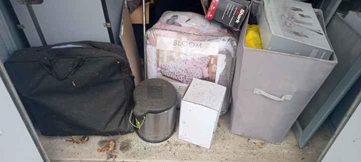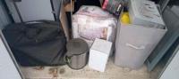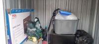 This unit appears to contain…Fenced & Gate, Indoor, Security Cameras 32"TV, comforter, mirror, storage chest box, mini fridge/freezer toaster, miscellaneous items