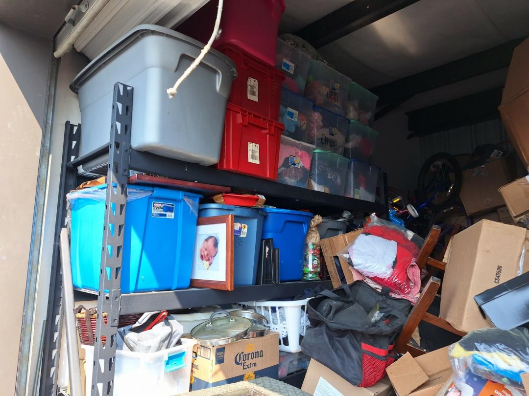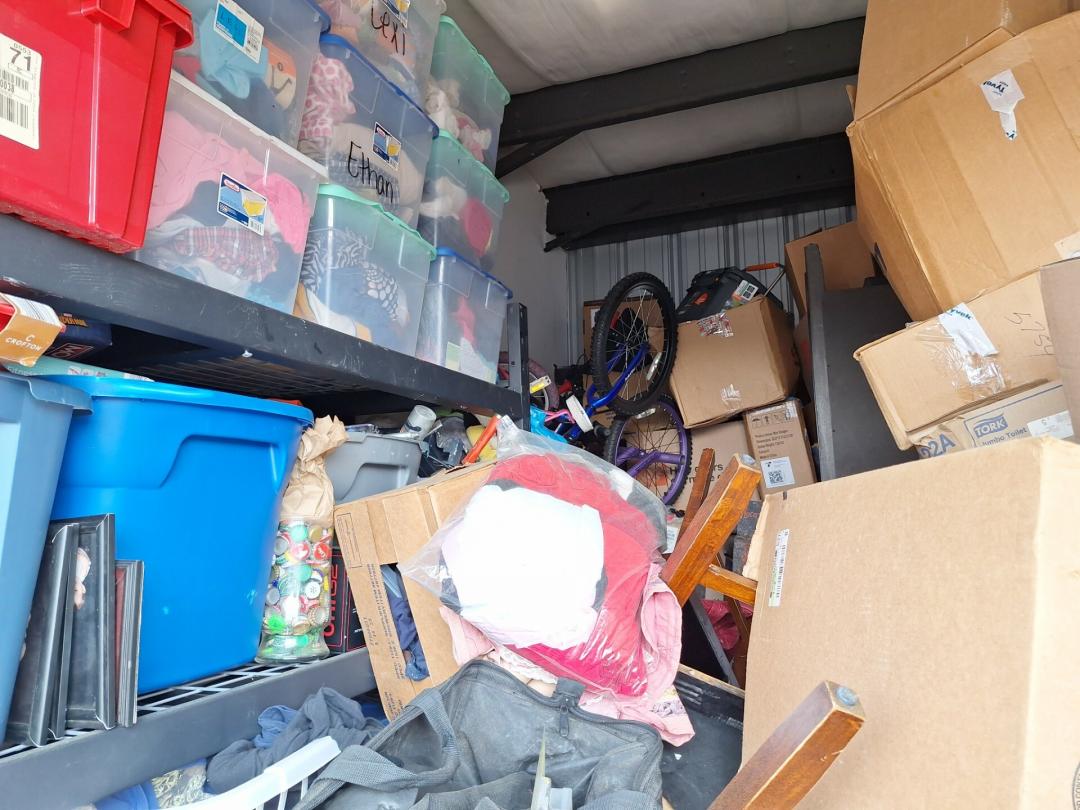 This unit appears to contain…Toolbox. Bike, Tools, Medical Supplies, Landscaping equip., Shelving, Mattresses, Box Springs, Bed fRames, Dressers/Armoire, Lamps, Chairs, Tables, Kitchenware, Decor, Plastic Bags, Plastic Containers, Misc. Boxes, Clothing, Suitcases, Laundry Baskets, Artwork, Coolers, Toys, Misc. Items