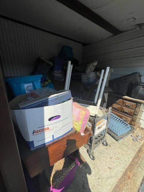 This unit appears to contain…Couch, Bed Frame, Dresser, Chair, Table, Decor, TV Stand, Plastic Bins, Boxes, Suitcase, Misc. Items