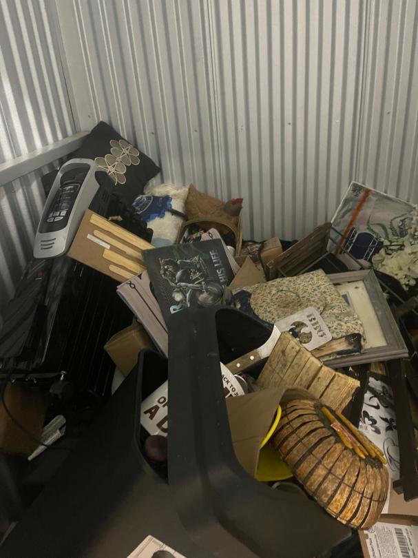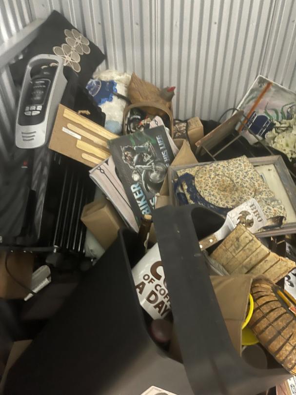 This unit appears to contain…Table, Boxes, Artwork, Heater, Misc. Items