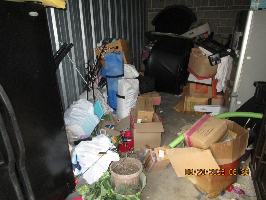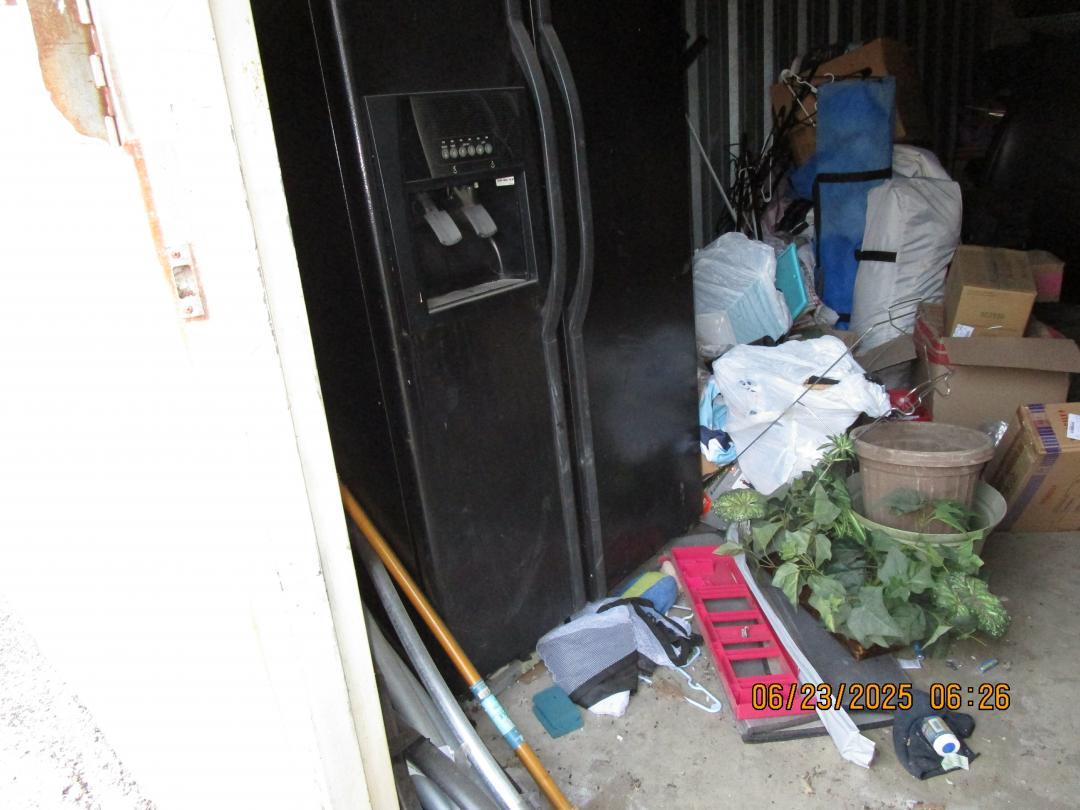 This unit appears to contain…refrigerators, dresser, boxes, totes