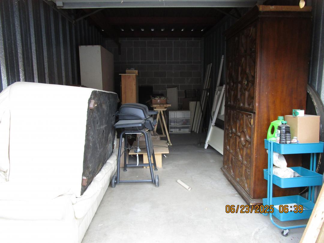 This unit appears to contain…couches, dressers, grill, totes, boxes, head/footboard