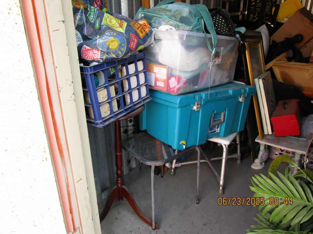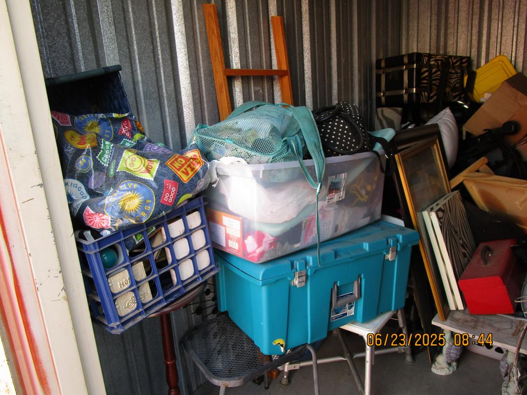This unit appears to contain…chairs, boxes, totes, luggage, table