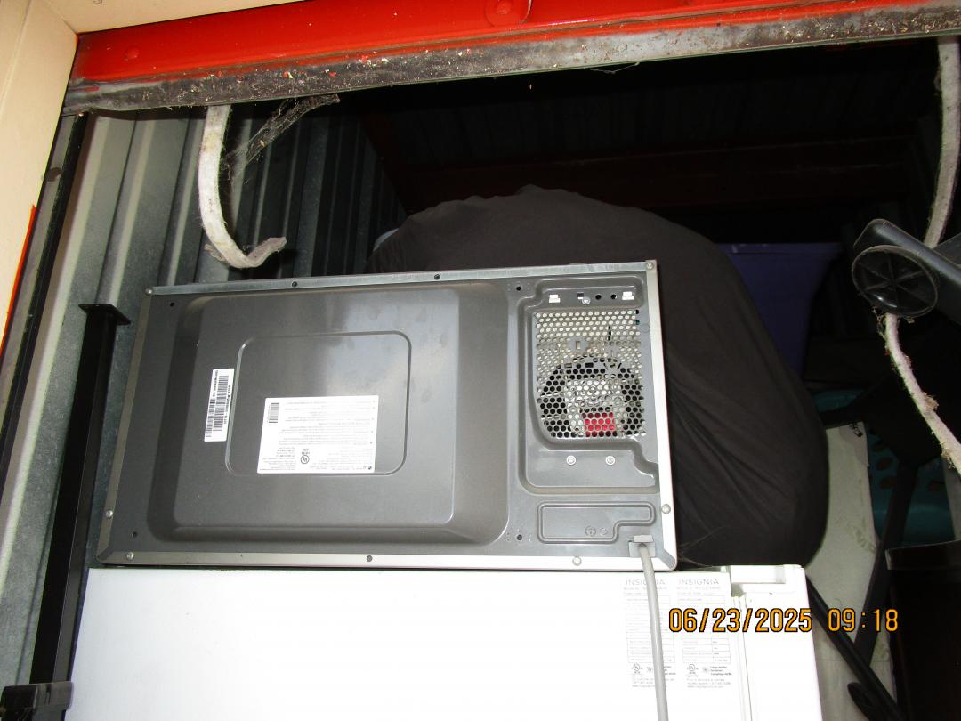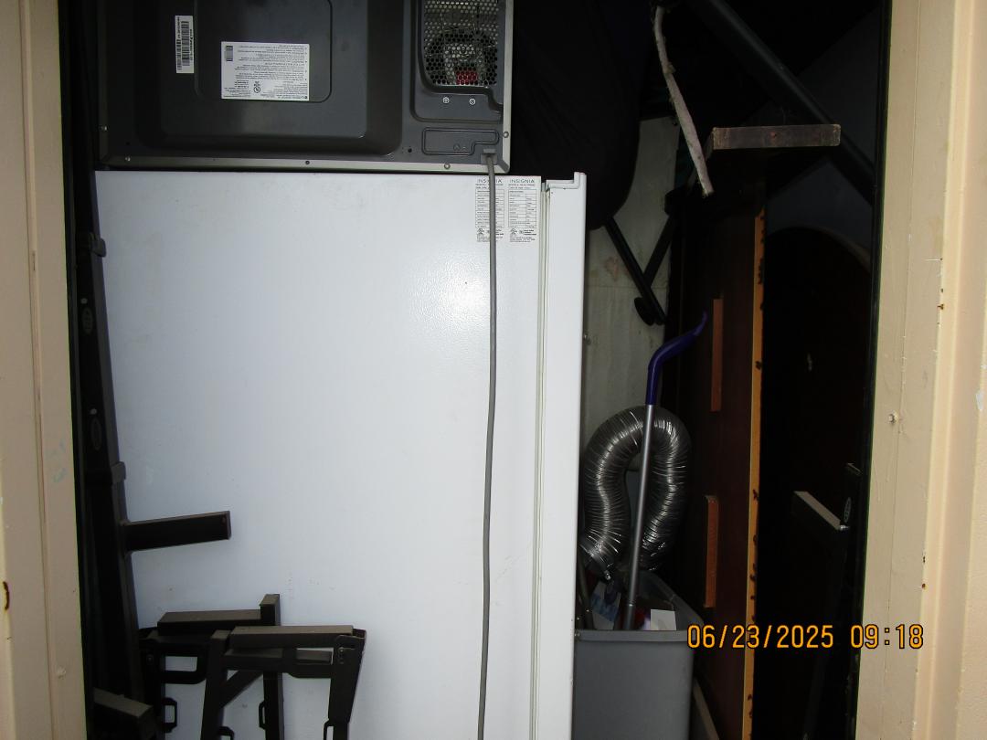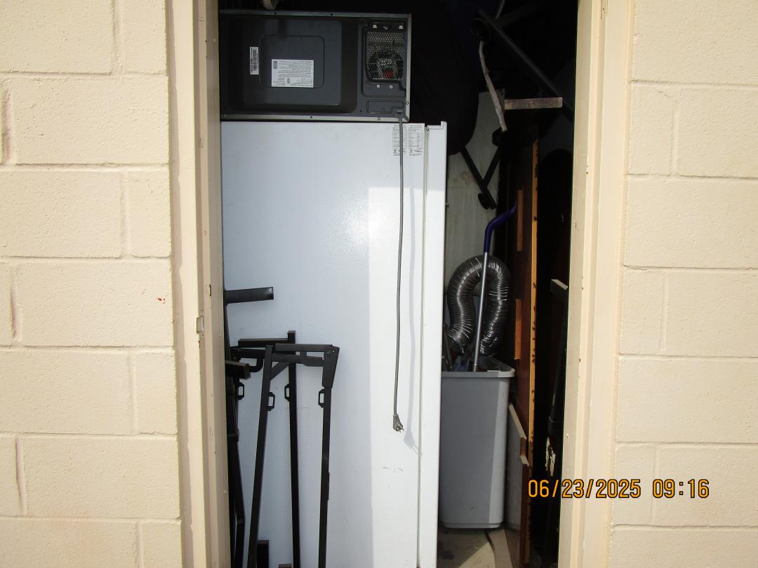 This unit appears to contain…refrigerator, table, totes