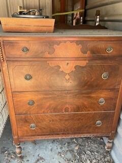 This unit appears to contain…Wicker Furniture, Antique Furniture, Record Player, Curio Cabinet