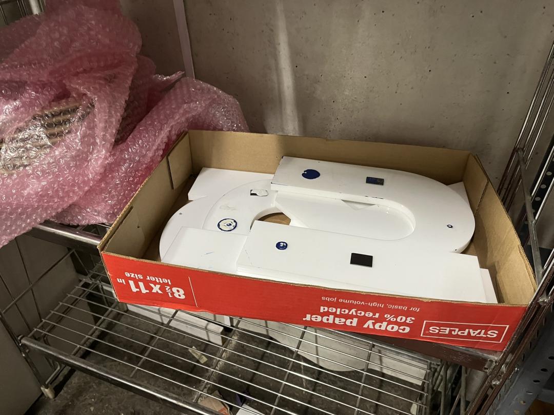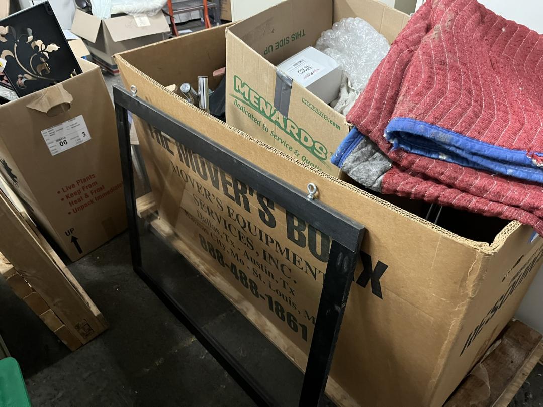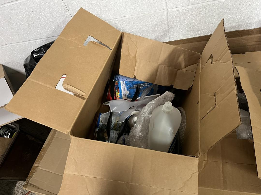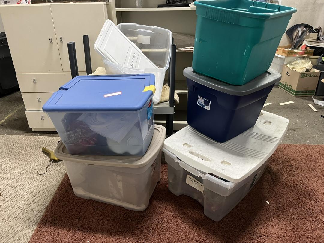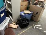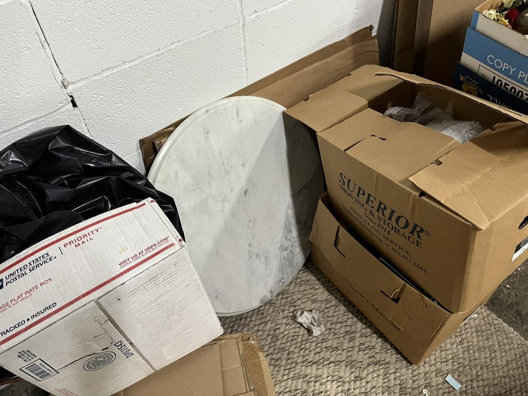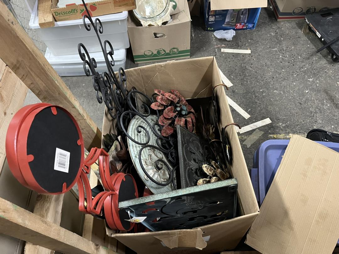 This unit appears to contain…Filing cabinets, shelving. lamps, tables, kitchenware, decor, plastic containers, misc.. boxes, suitcase, bookbag, artwork, throw pillows, seat cushions, plates, misc. items.