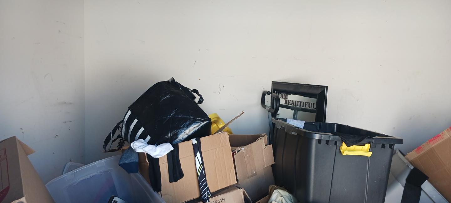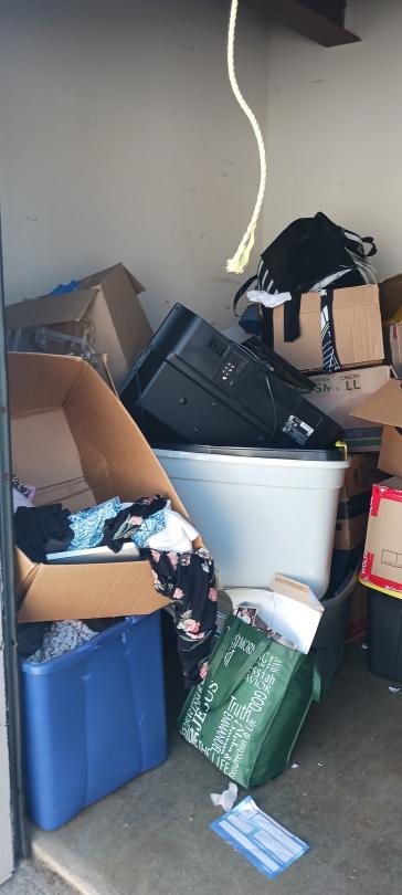 This unit appears to contain…TV, BOXES, TOTES