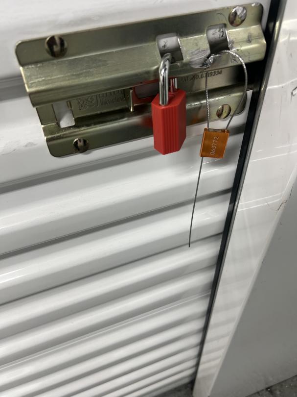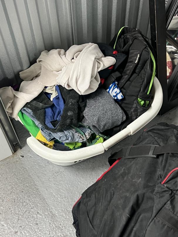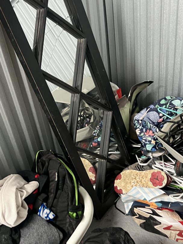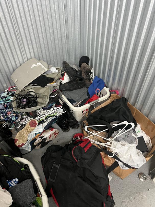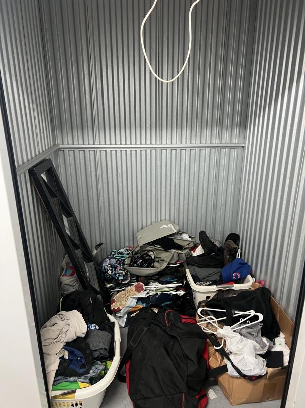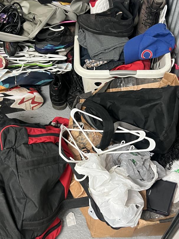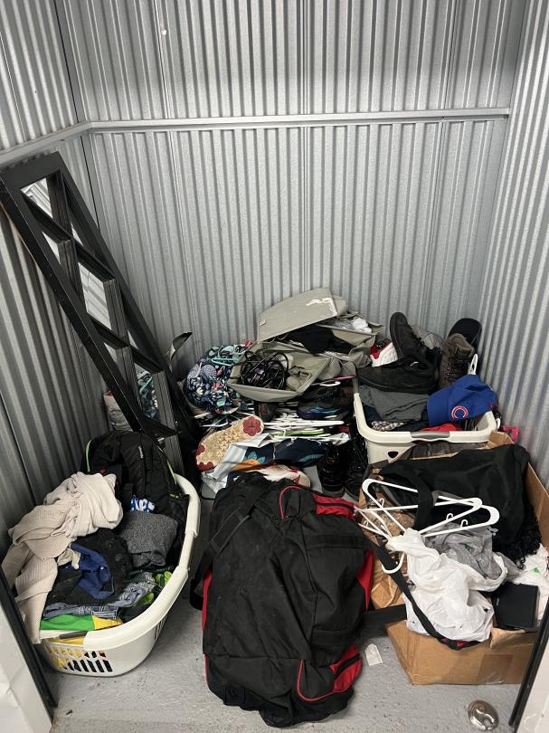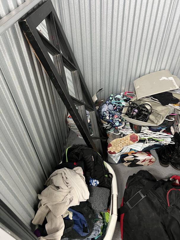 This unit appears to contain…UNIT APPEARS TO CONTAIN CLOTHES, TOTES, BOXES, SHOES, MIRROR AND HANGERS. SEAL 063772