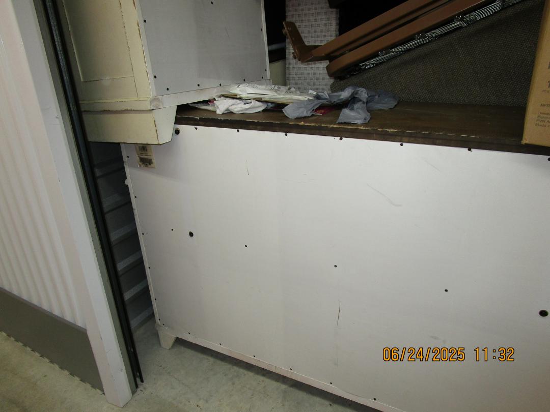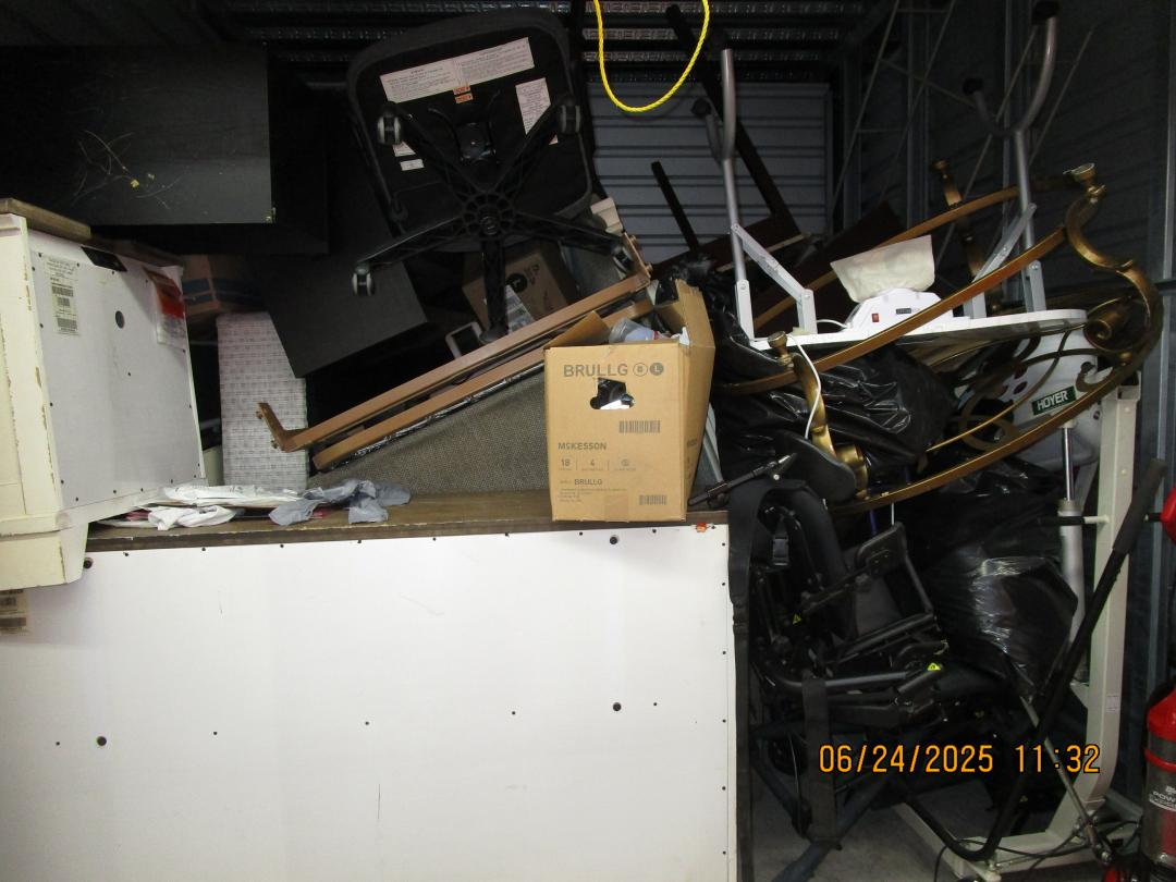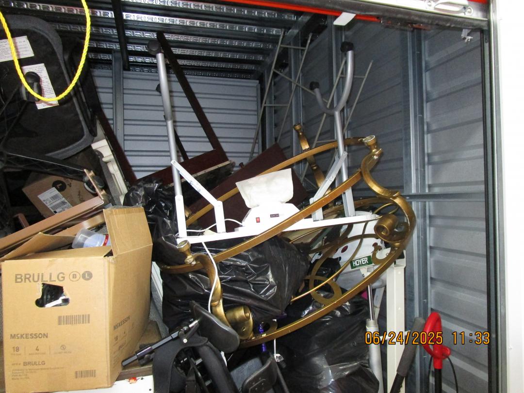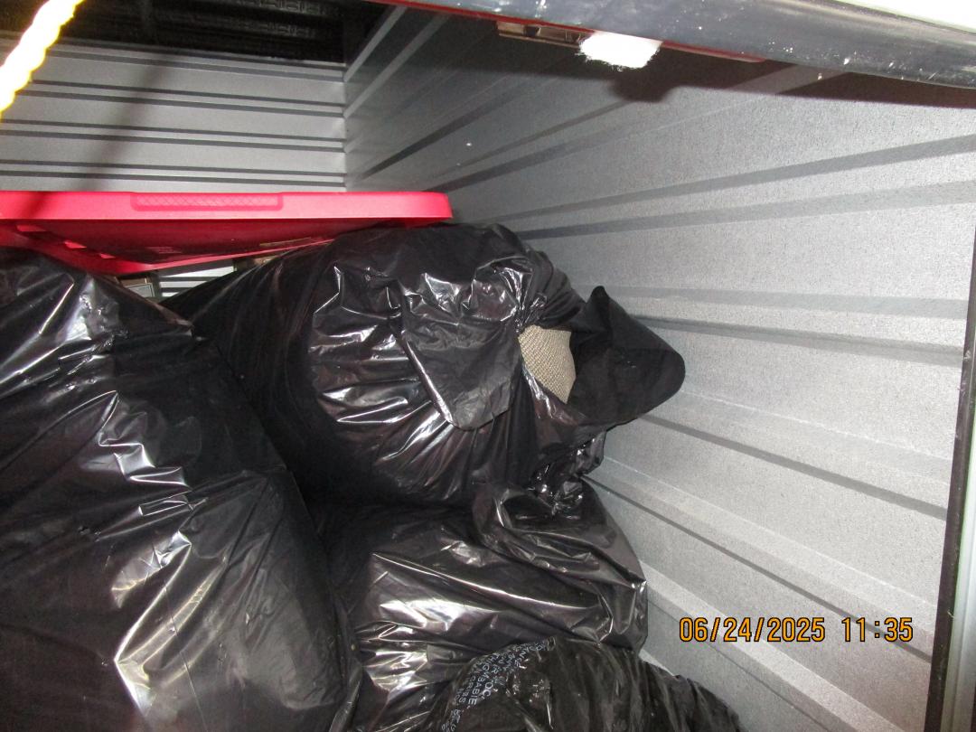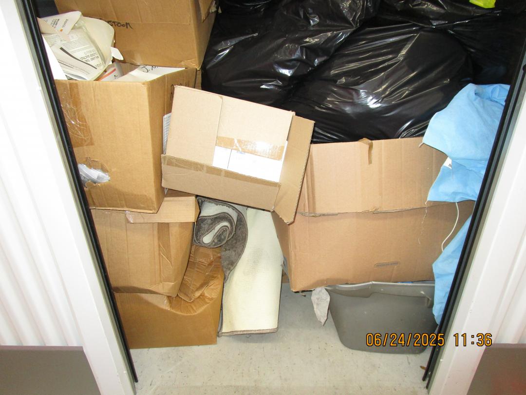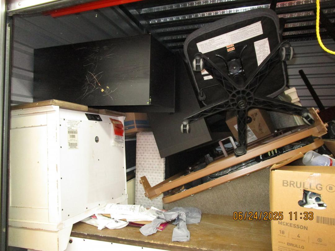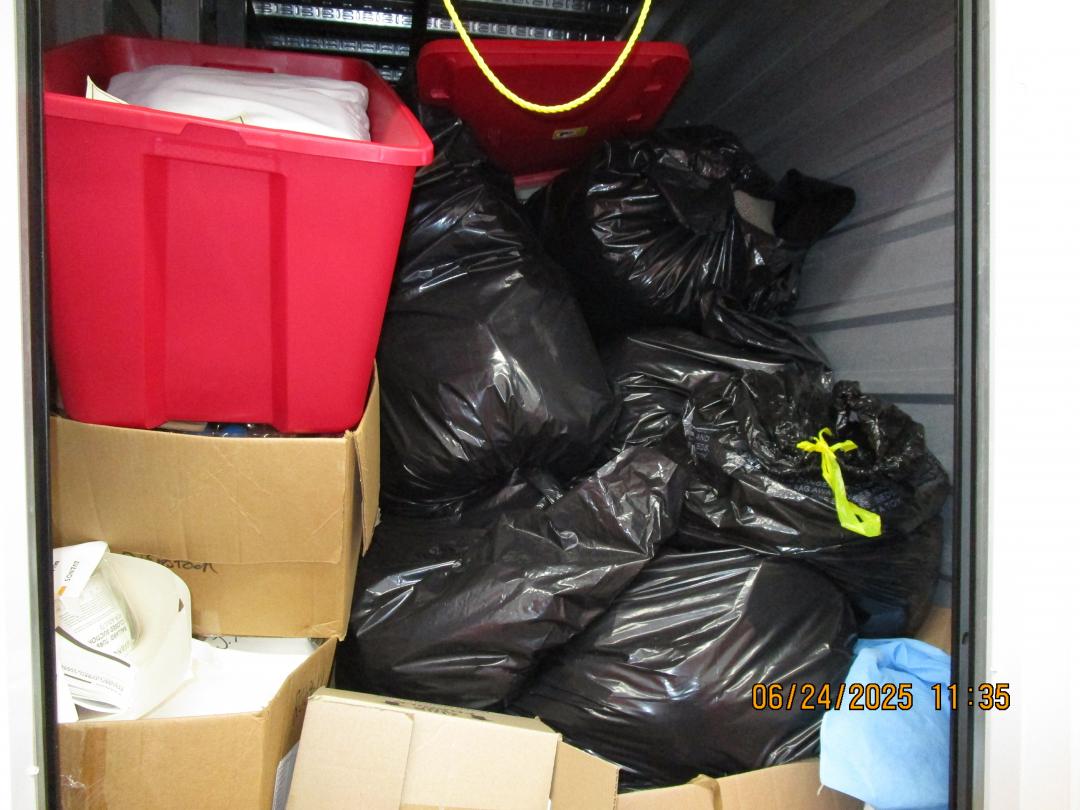 This unit appears to contain…This is a combination of a 10x10 and a 5x10-boxes, totes, bags, chairs, dresser, mattress
