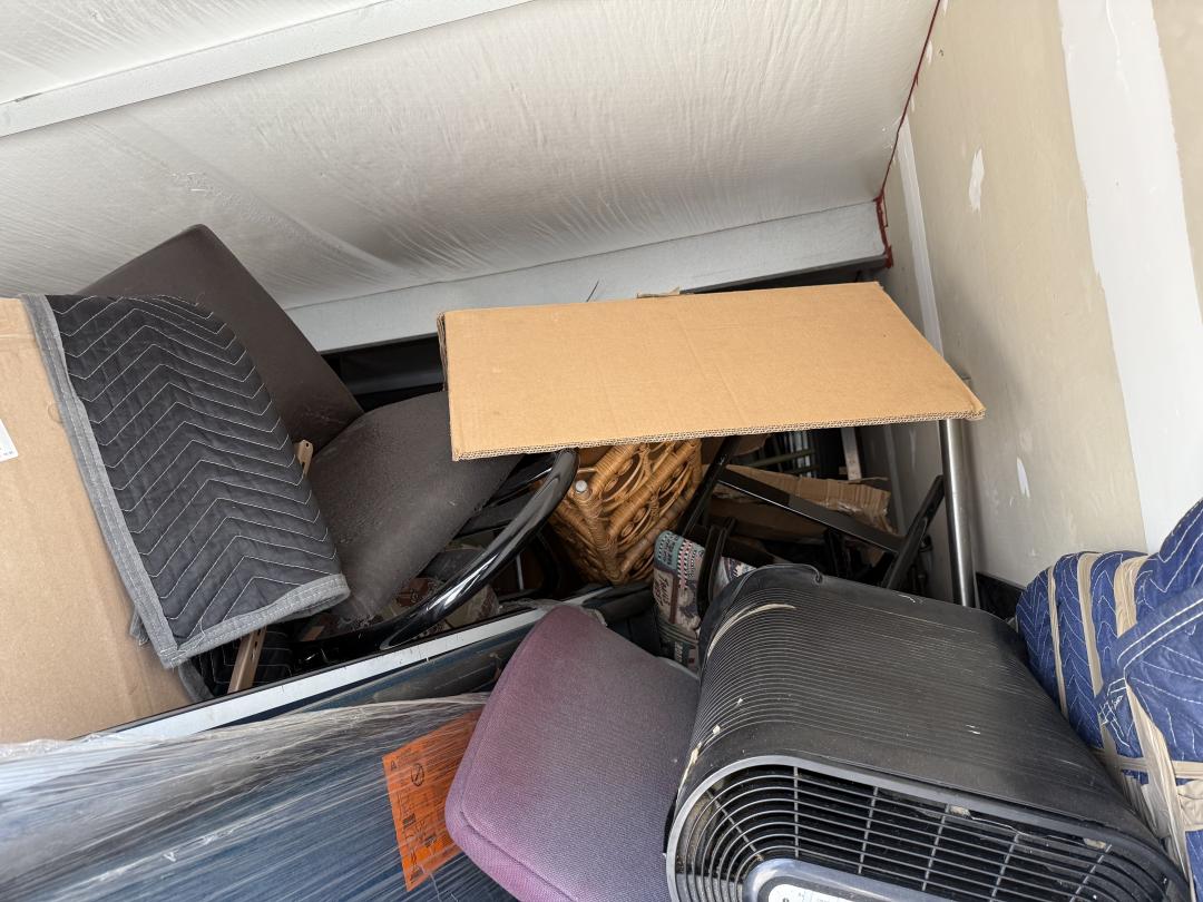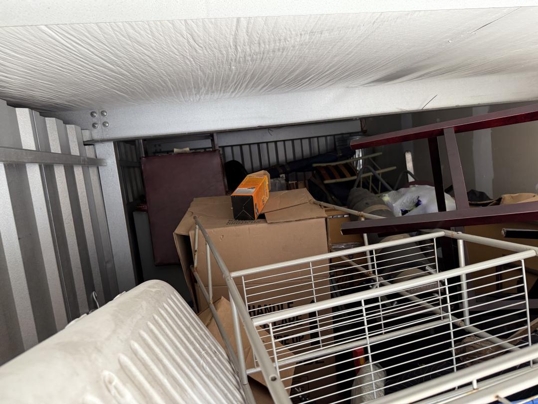 This unit appears to contain…This unit appears to contain boxes, chairs, totes, tables, a ladder, and a vacuum.