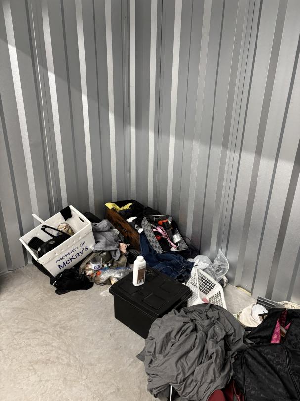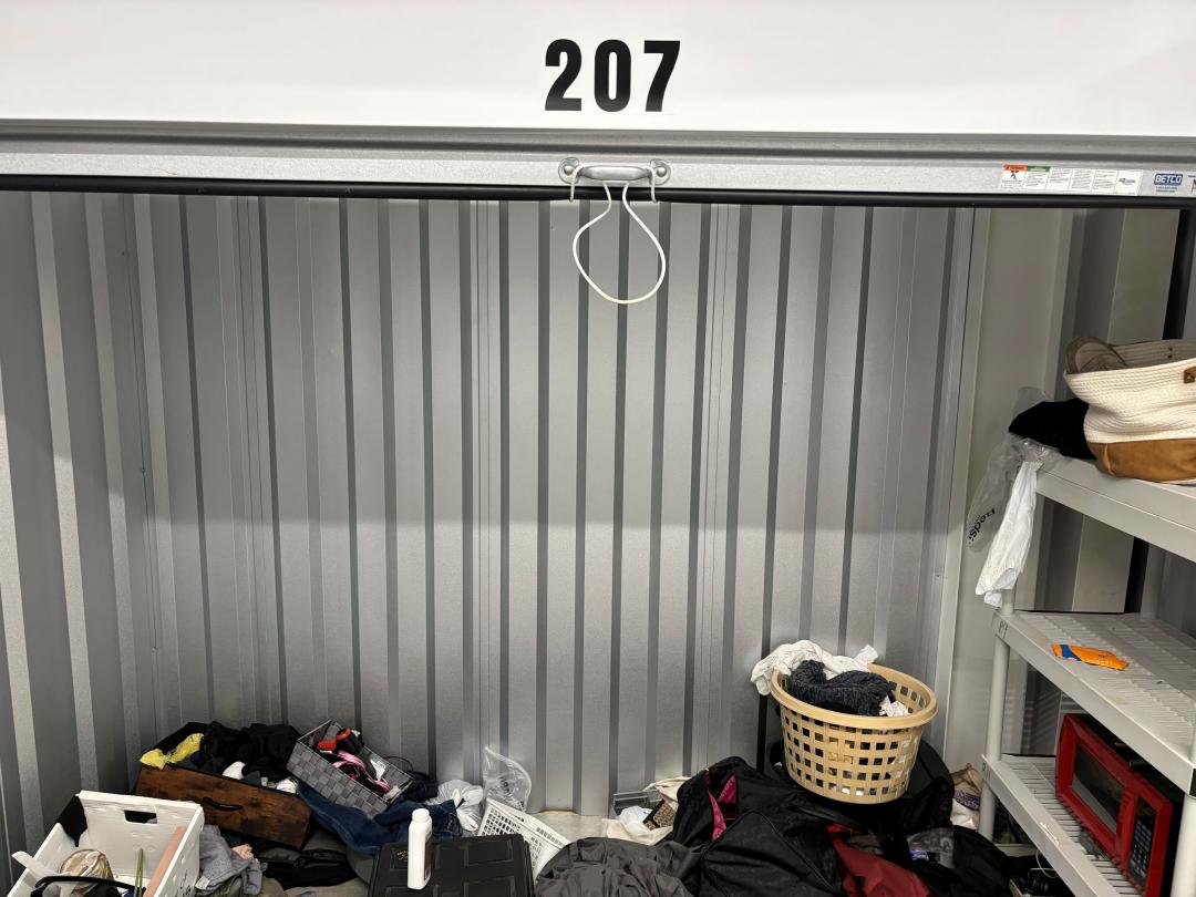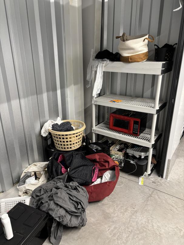 This unit appears to contain…Clothing, Tools, Microwave, Luggage, Household Items, Shelf...etc.