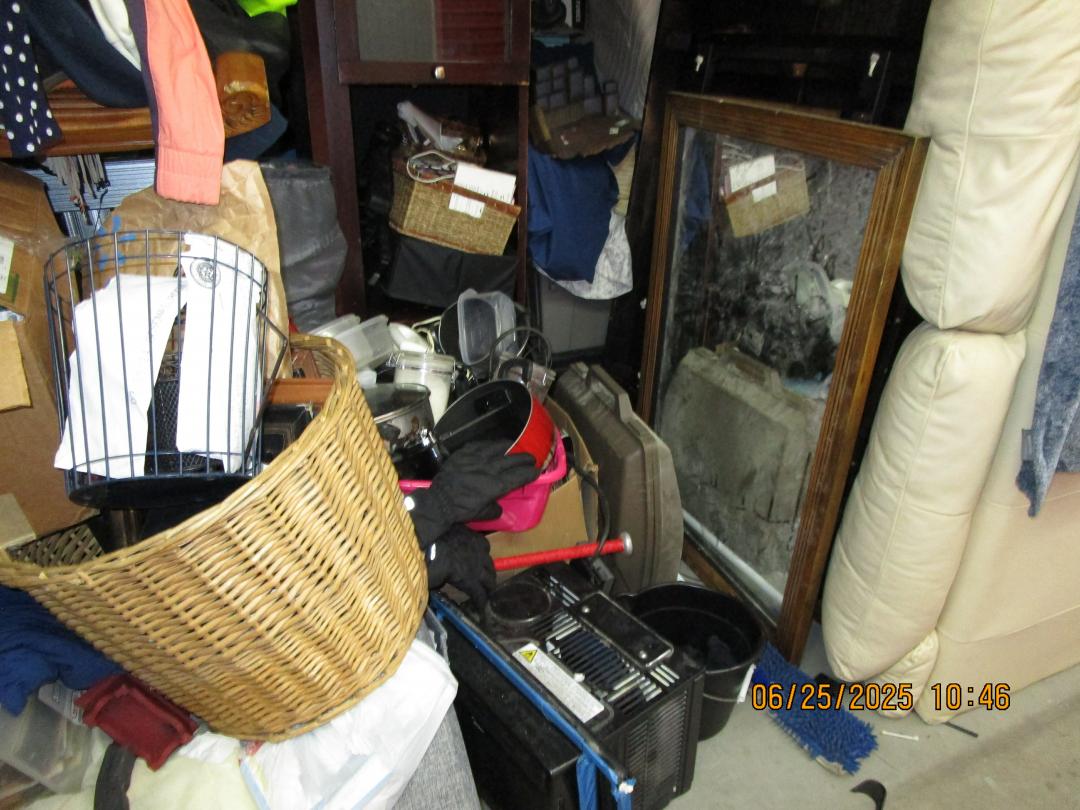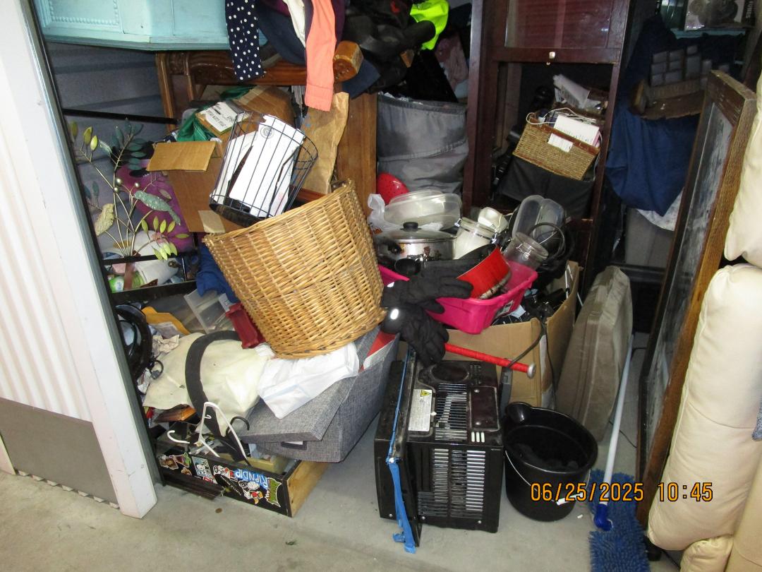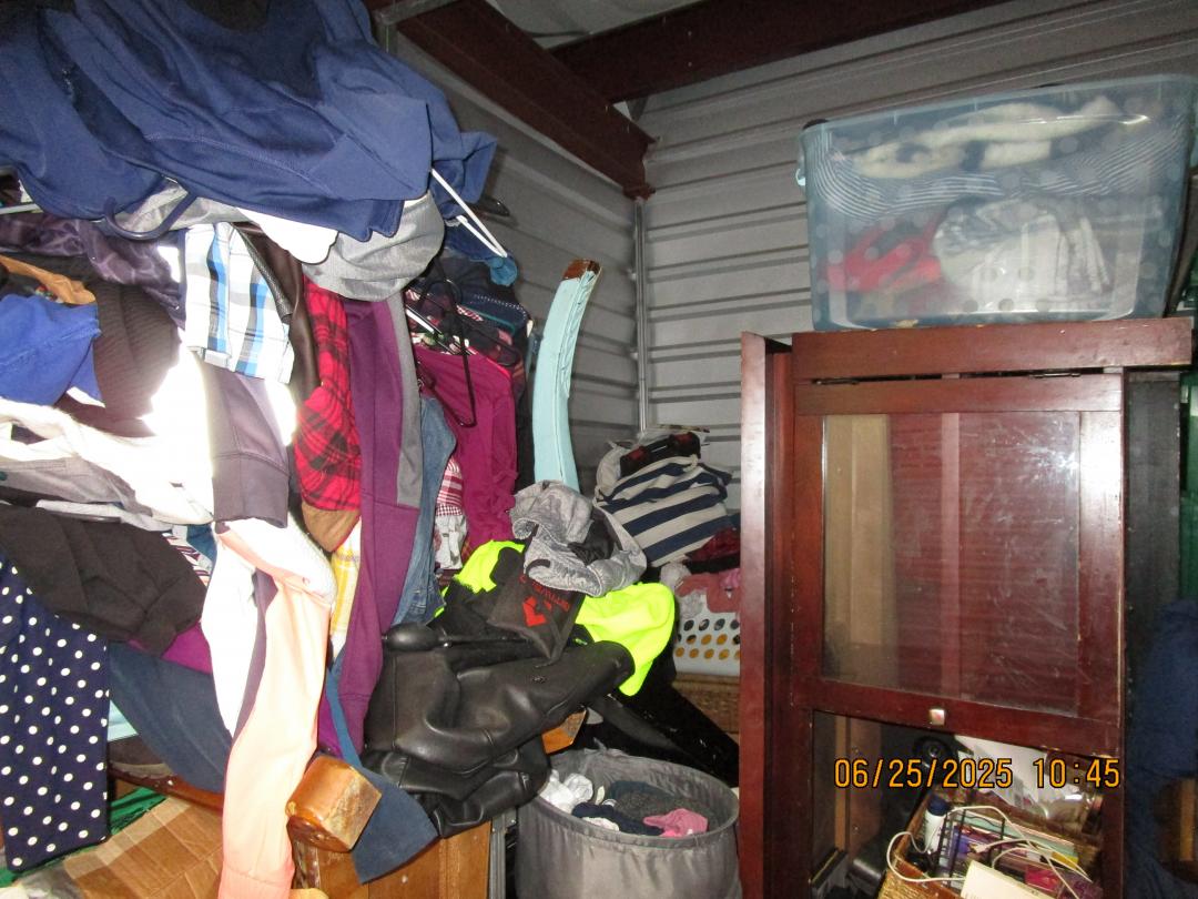 This unit appears to contain…couches, chairs, clothes, boxes