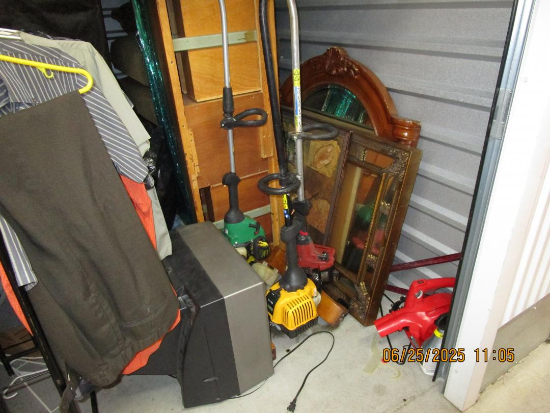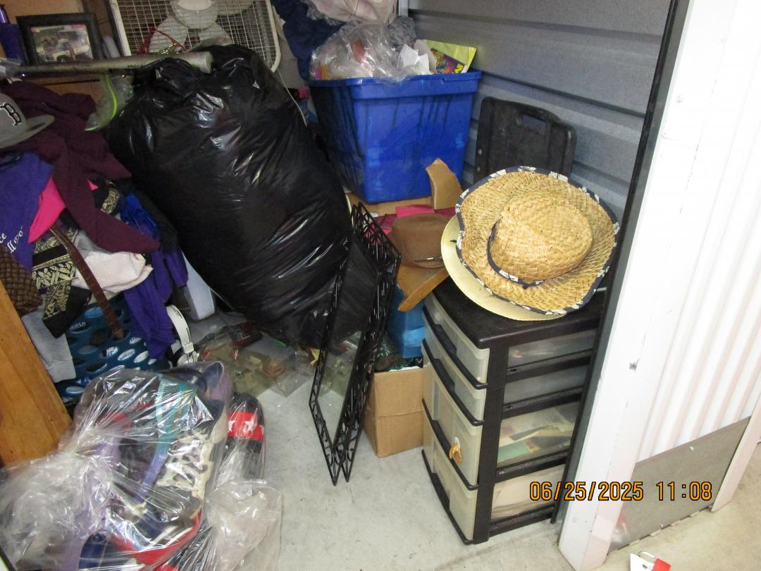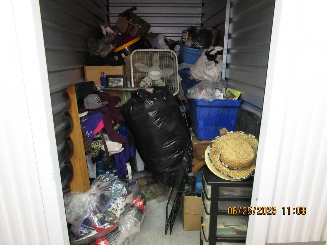 This unit appears to contain…This is a combination of 5x10 and 10x10 units-couches, clothes, weed trimmer, boxes, totes