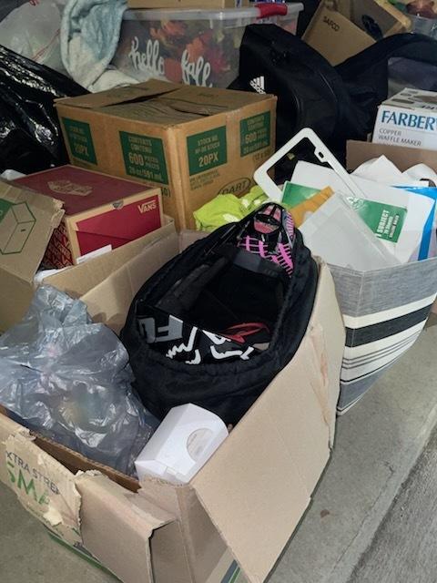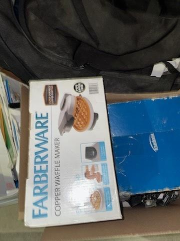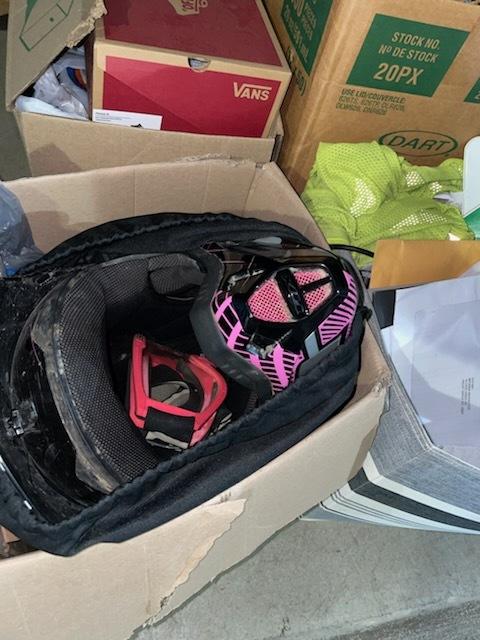 This unit appears to contain…drive up unit appears to contain Fox dirtbike helmet & goggles, Faberware copper waffle maker, child's guitar, decorations, "Fall" wooden sign, backpack, boxes/totes/bags tag#066807