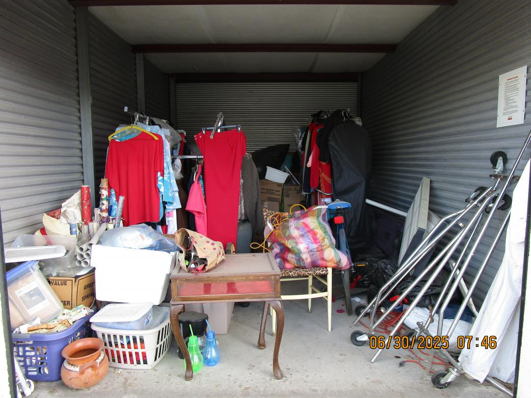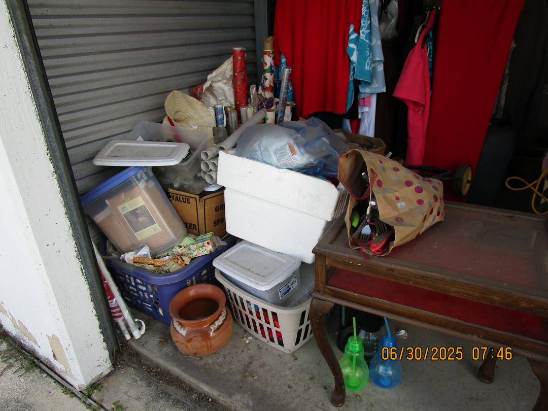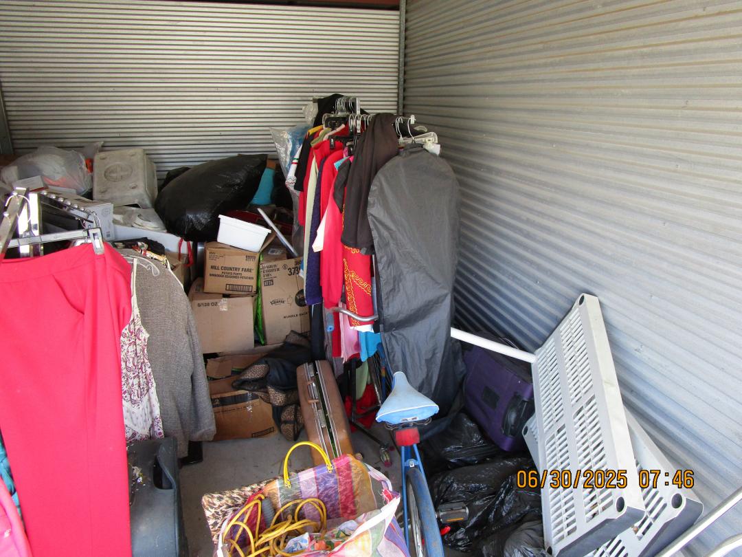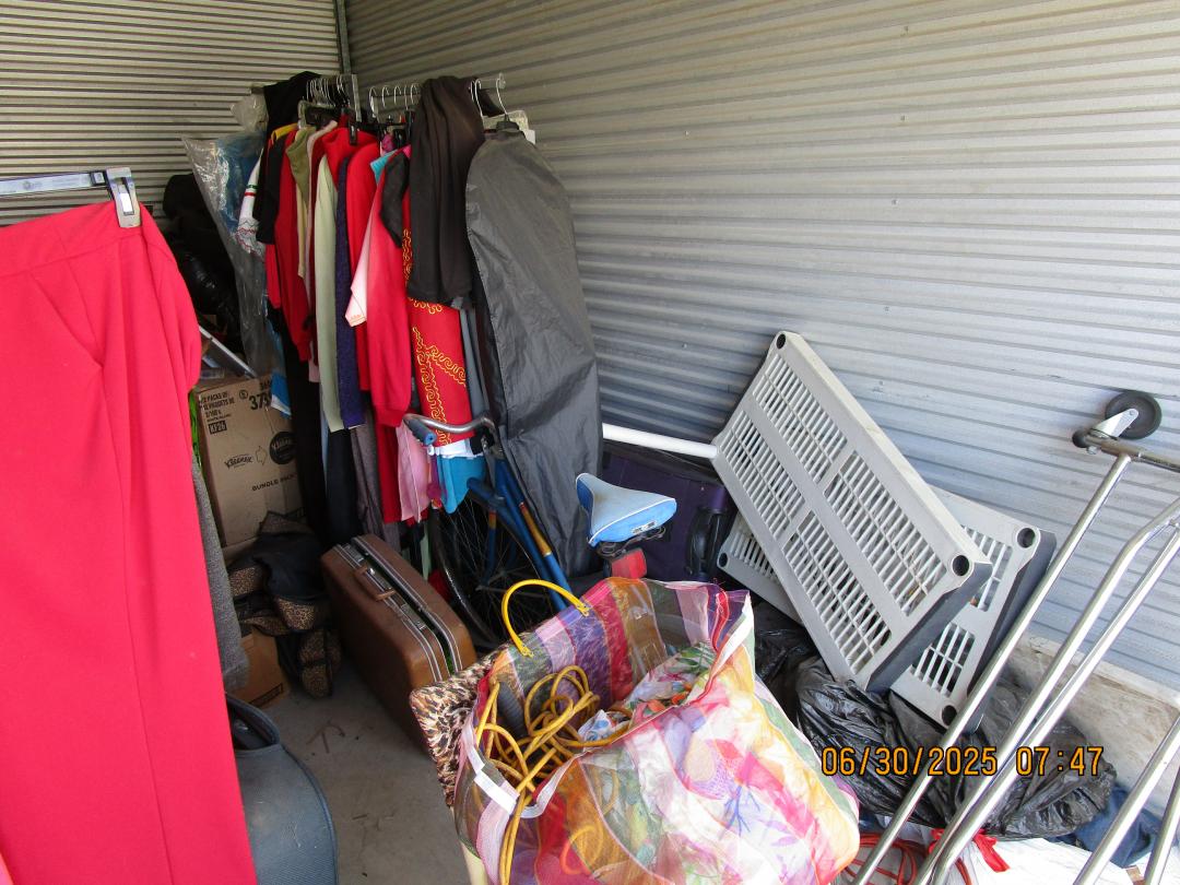 This unit appears to contain…boxes, clothes, bicycle, luggage