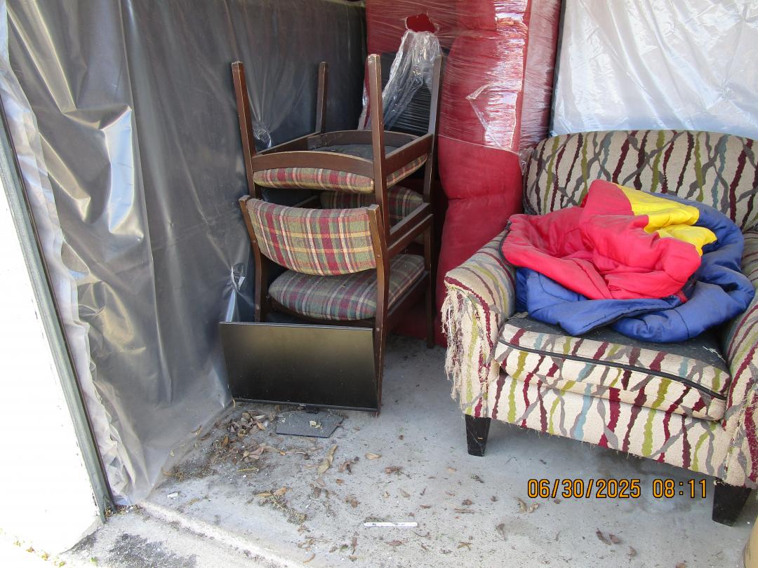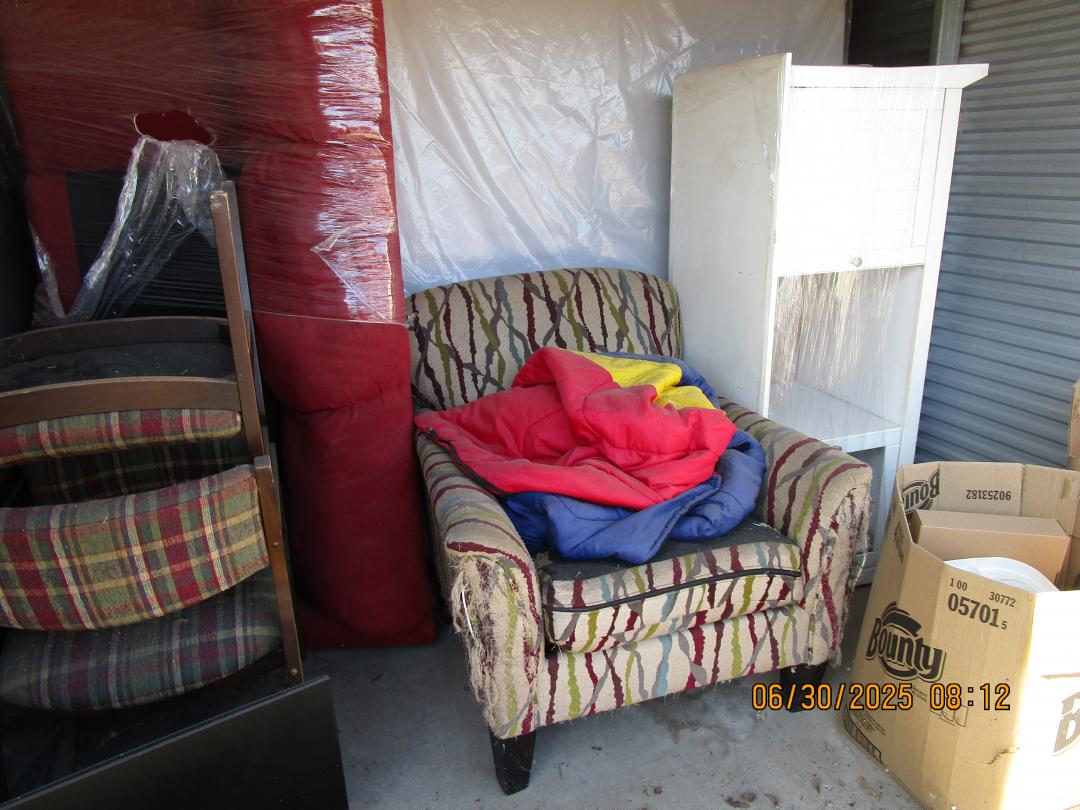 This unit appears to contain…couches, chairs, boxes, mattresses