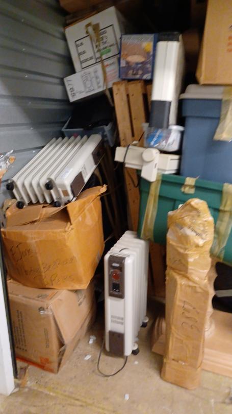 This unit appears to contain…boxes, totes, table, heater, furniture, mattress seal: 450291