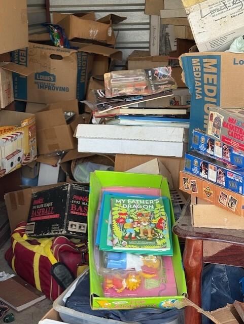 This unit appears to contain…Filing Cabinet, Plastic Bags, Plastic Containers, Misc. Boxes, Toys, Misc. Items, toolbox
