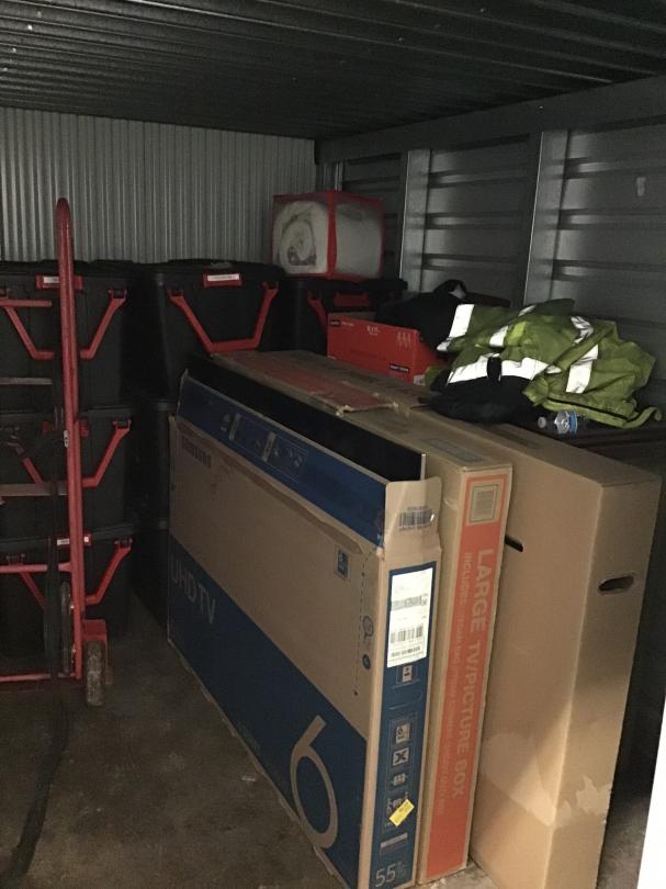 This unit appears to contain…10x10x6 Split Level 1st Floor Street Level Climate. Unit appears to contain totes, tv, safe, dolly, end table, tools and ladder