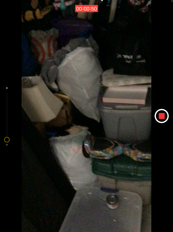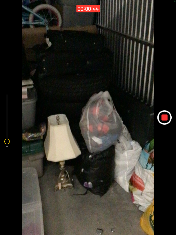This unit appears to contain…Tires, bikes, boxes, totes, bags, suitcases, lamps, lawn furniture Seal: 1932130