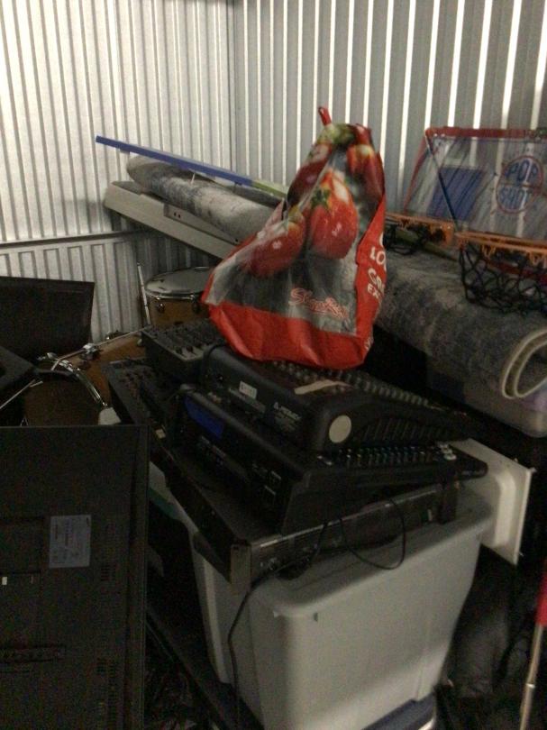This unit appears to contain…couch, bags, tv, drum set, DJ equipment, golf bag, Seal:3585576