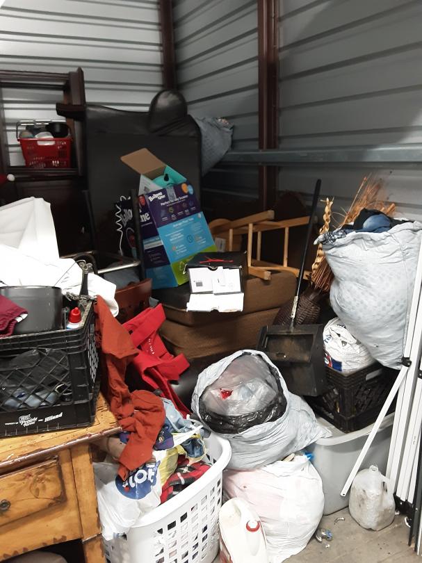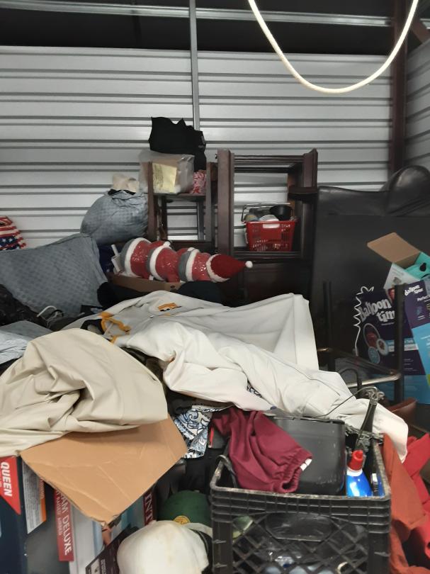 This unit appears to contain…Furniture, clothes and shoes, totes, appliances, art, holiday items