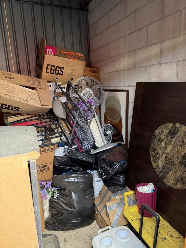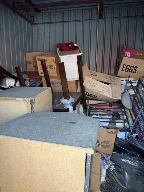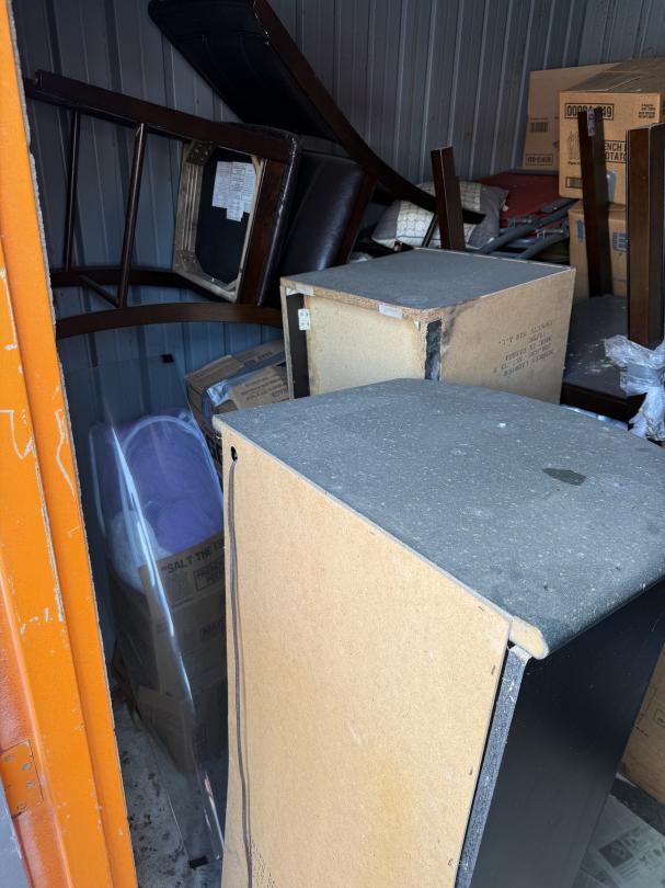 This unit appears to contain…appliances, bedding/clothing, furniture, electronics