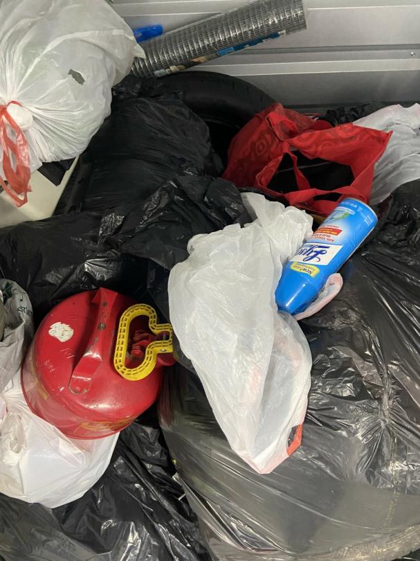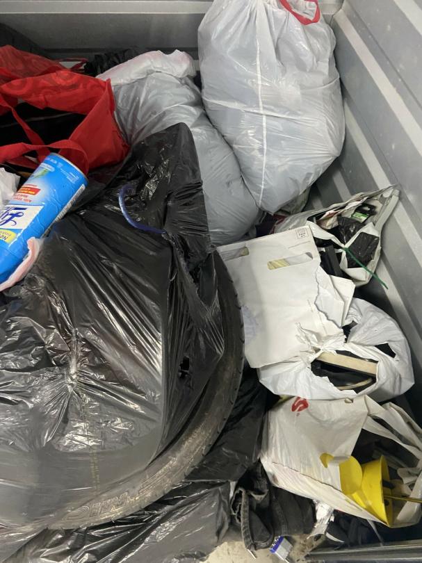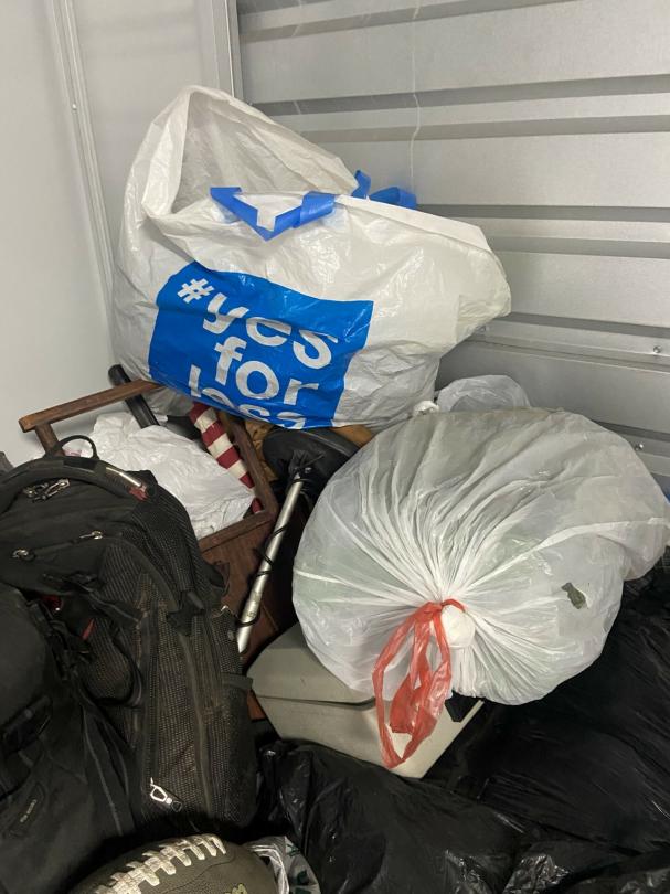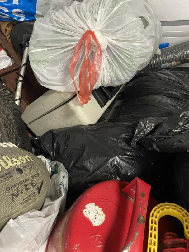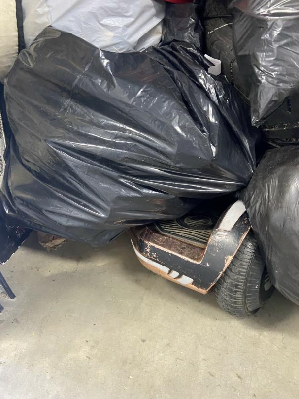 This unit appears to contain…bags, backpack, football, tire, hoverboard