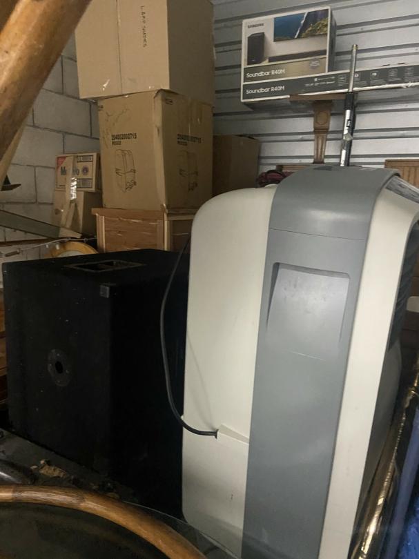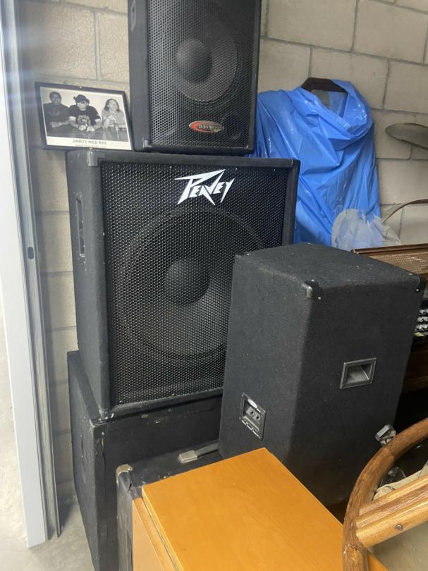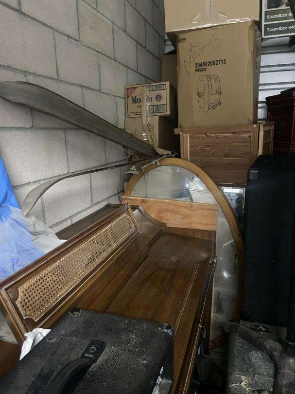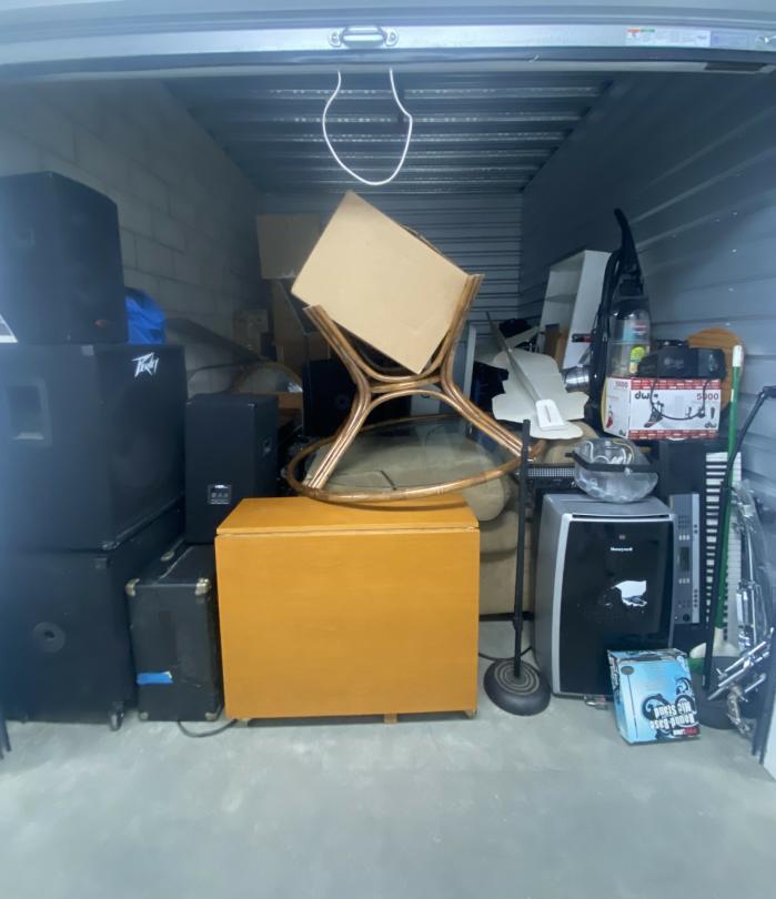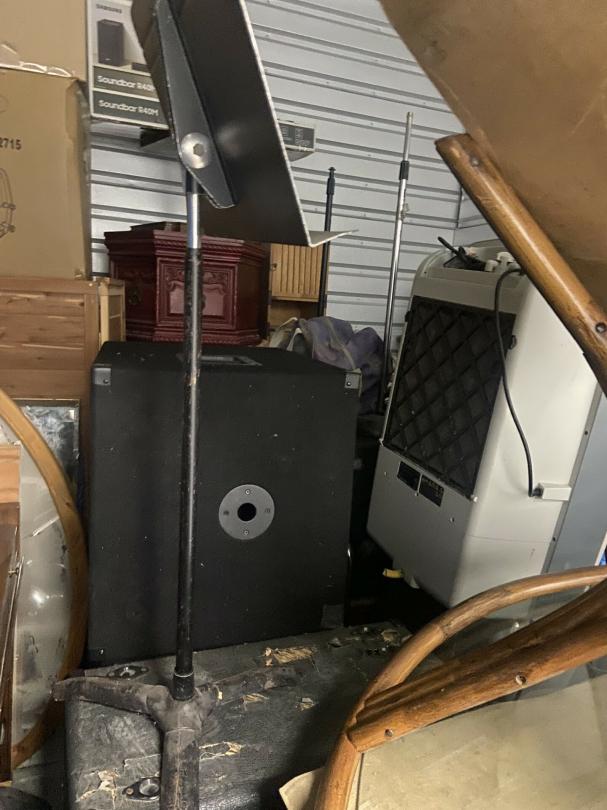 This unit appears to contain…musical instruments, speakers, skis, furniture