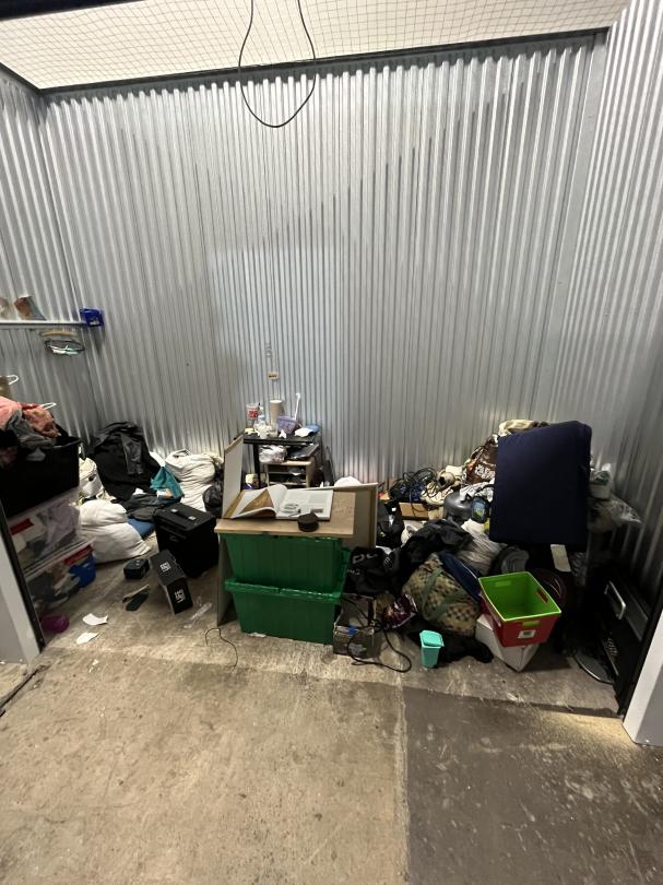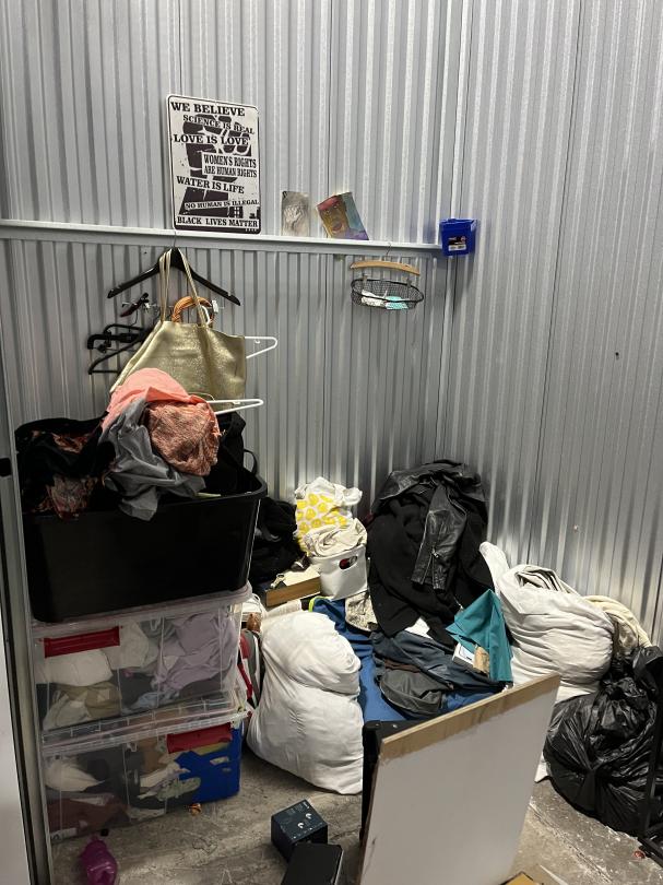 This unit appears to contain…Clothing, Totes, Bags, Decorations, Tools