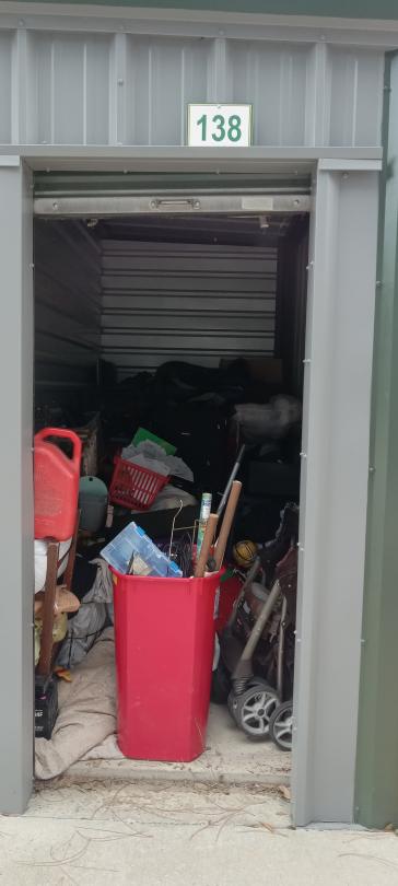 This unit appears to contain…TVs, furniture, clothes, bags, duffle bags, dishes, toys, decorations, large jack