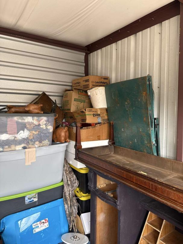 This unit appears to contain…24/7 Access, Drive Up Access, Fenced & Gate, Premium cabinet, boxes, storage boxes, chairs, random household items