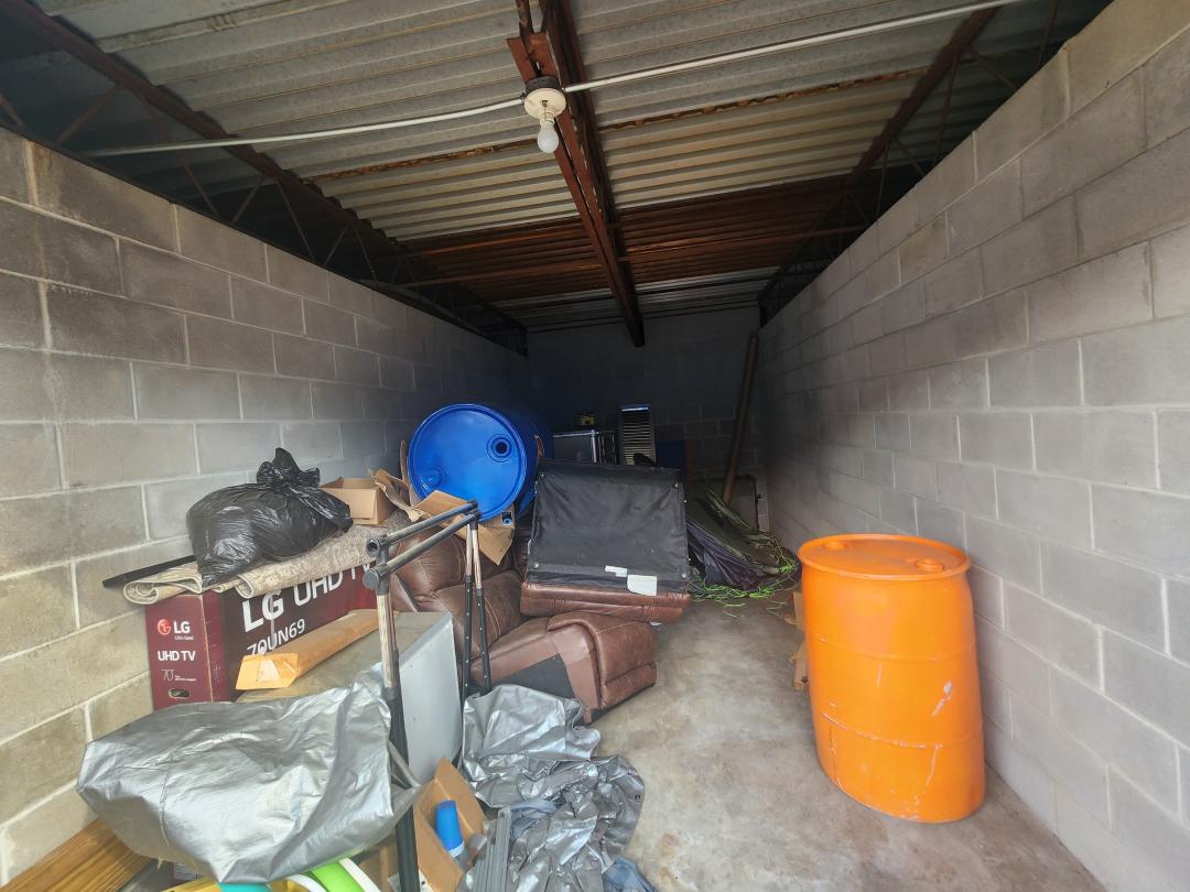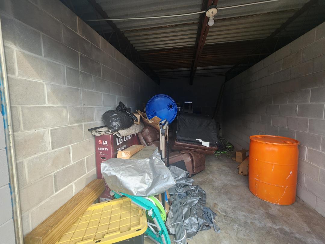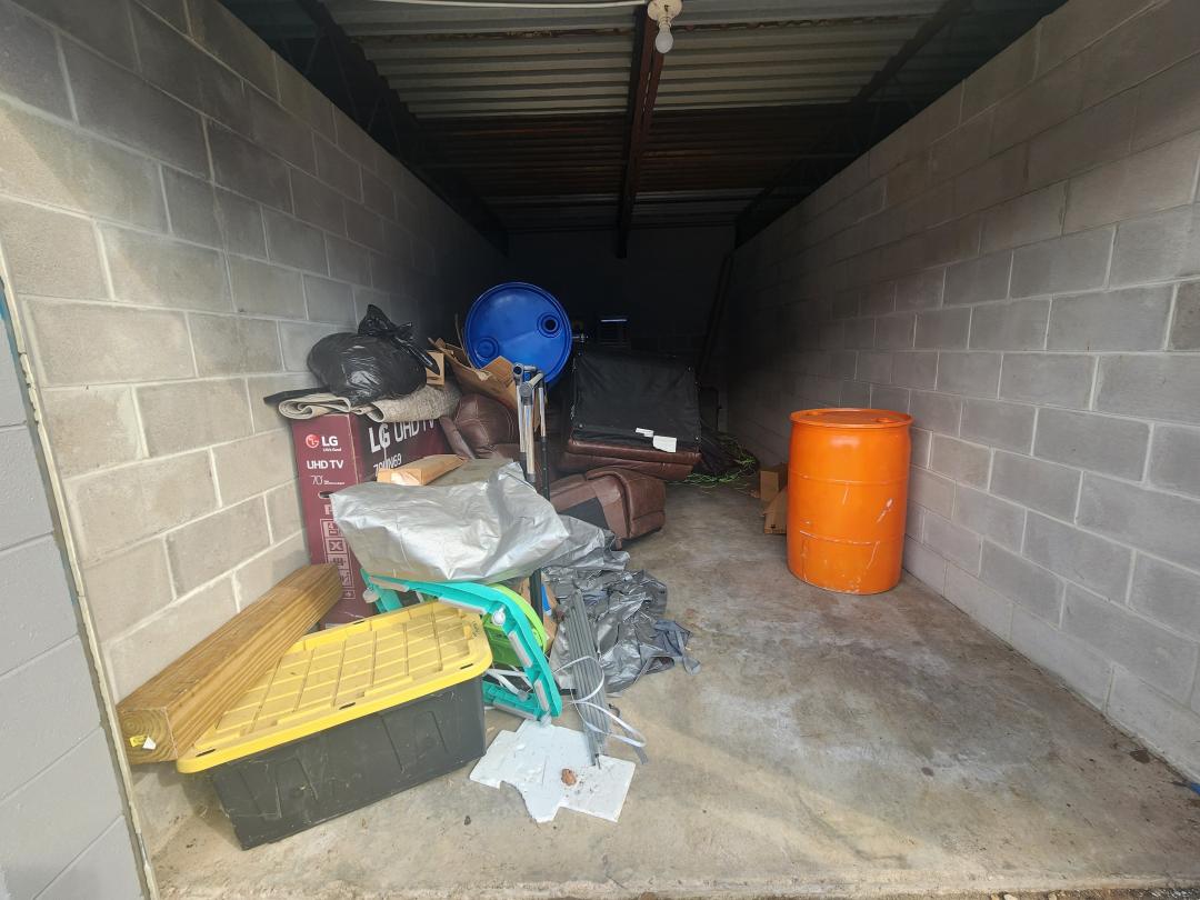 This unit appears to contain…Furniture, totes, bags, TV, possible tent