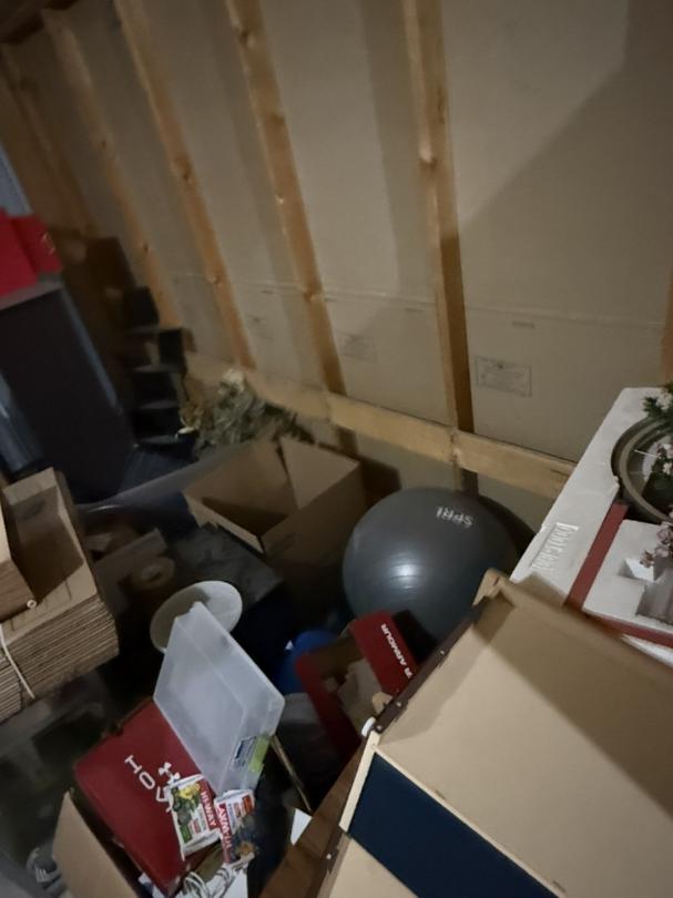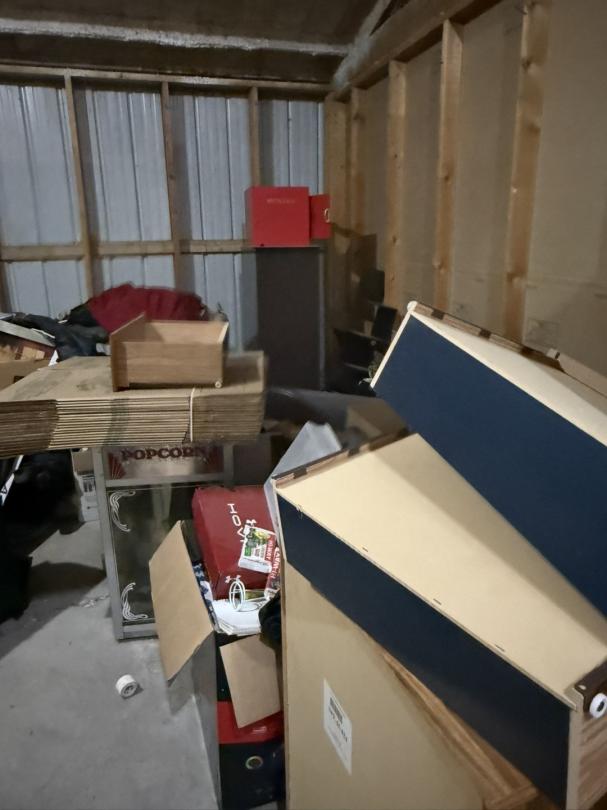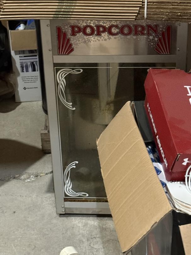 This unit appears to contain…Discover a Unique Blend of Entertainment and Fitness Treasures. This storage unit features a vintage style popcorn machine, a new Under Armour box suggesting athletic gear, and neatly stacked cardboard for crafting or shipping. A Spirit exercise ball hints at fitness equipment, while a suitcase and framed art add potential collectible value. Unopened boxes could include buyers treasure, alongside holiday decor possibly indicated by seasonal items. Ideal for resellers or hobbyists, this unit offers a mix of branded goods and untapped potential waiting to be explored.